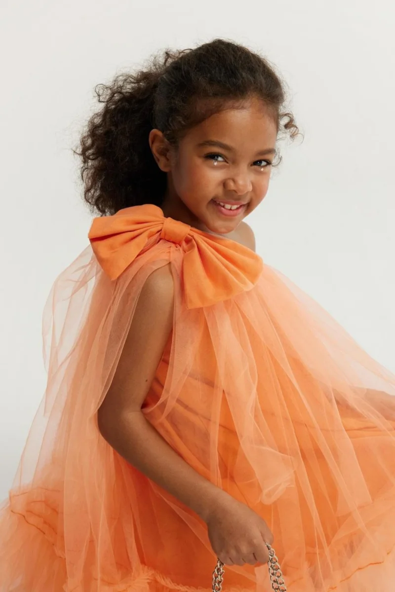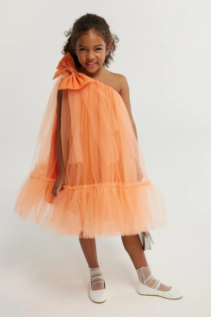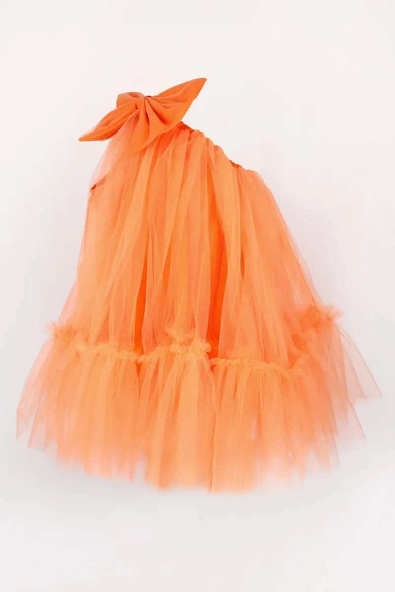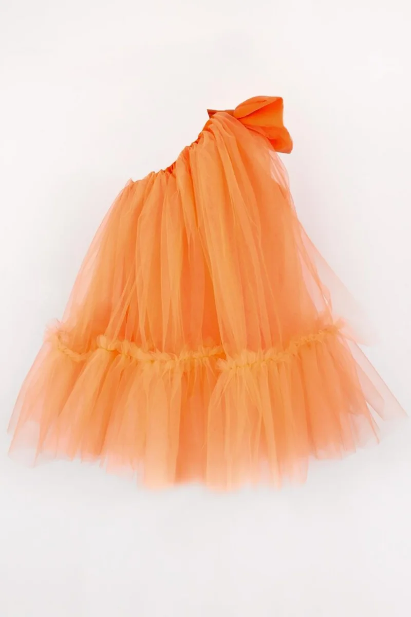 Abito Arancio Bambina Monospalla Tulle