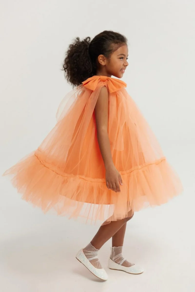 Abito Arancio Bambina Tulle e Fiori