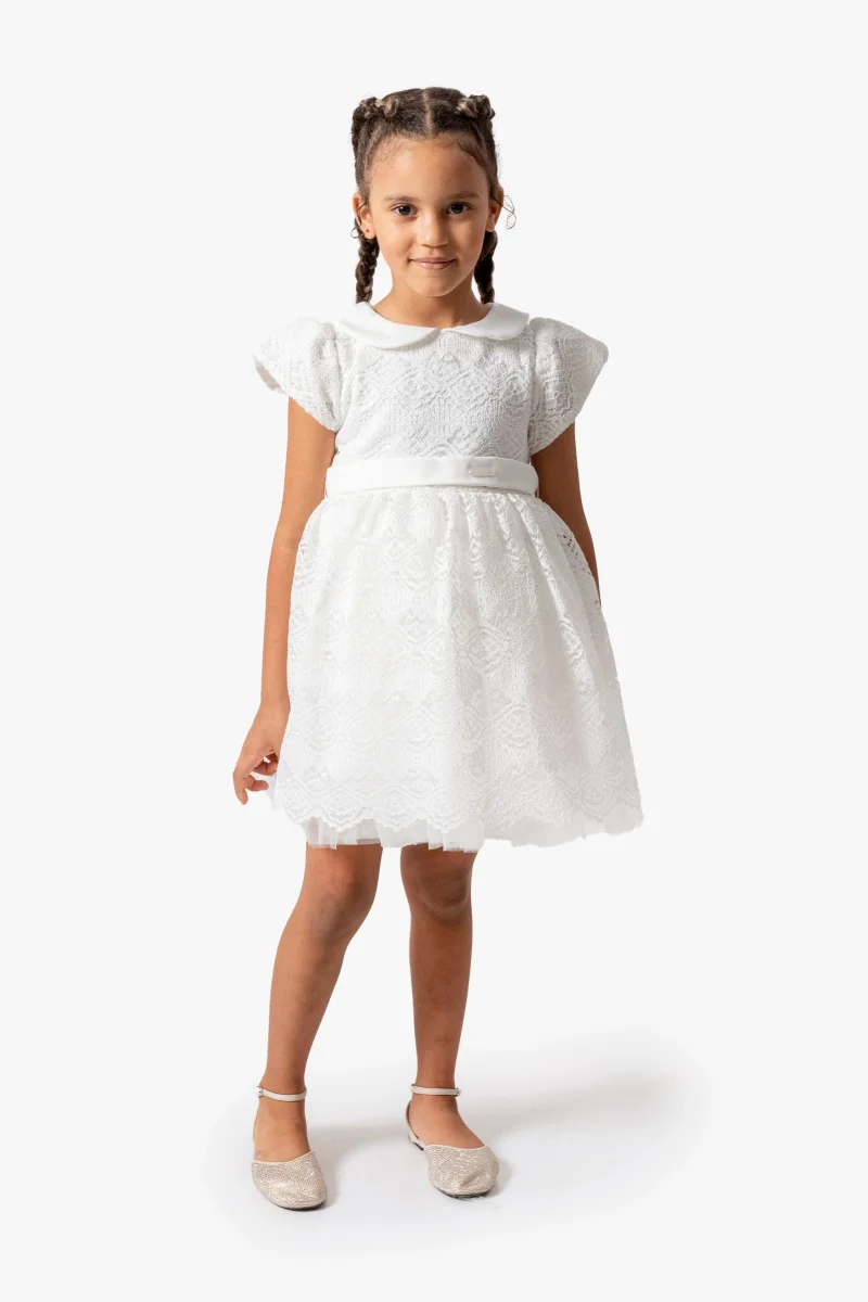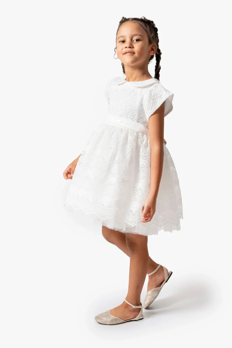 Abito Bambina Bianco Ricamato