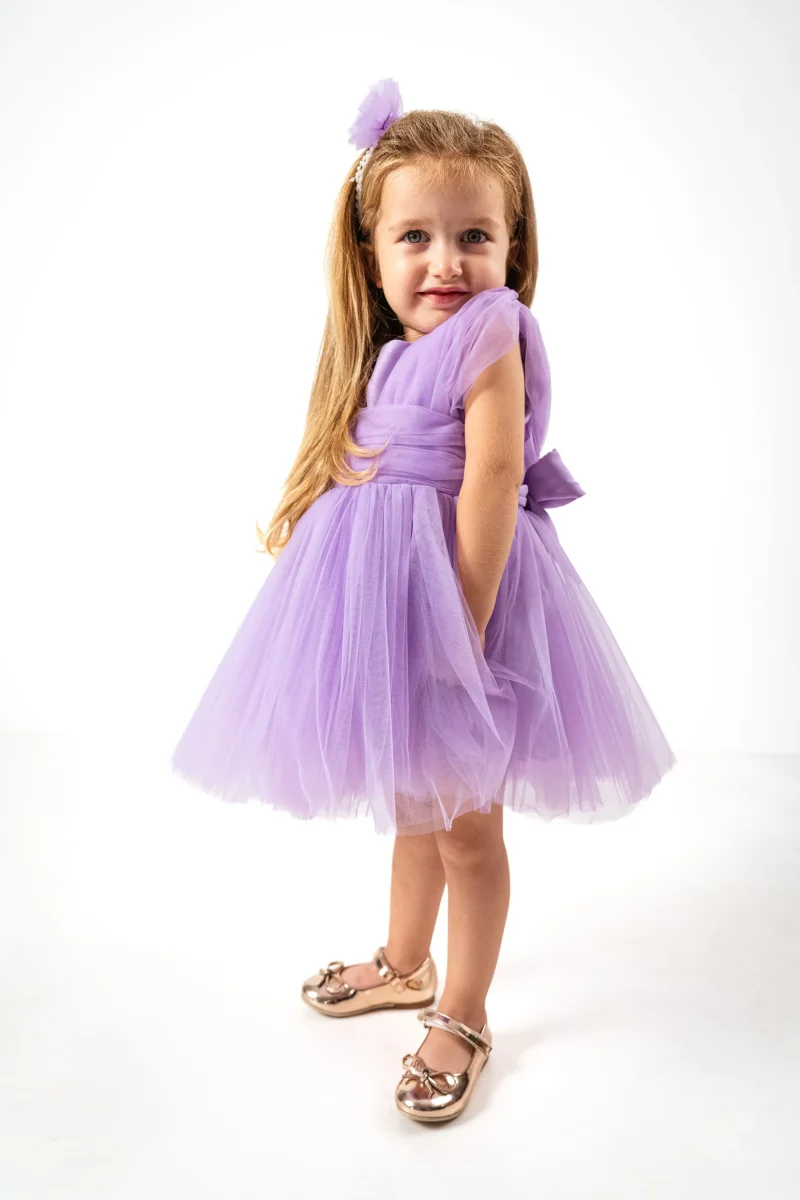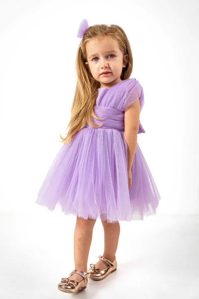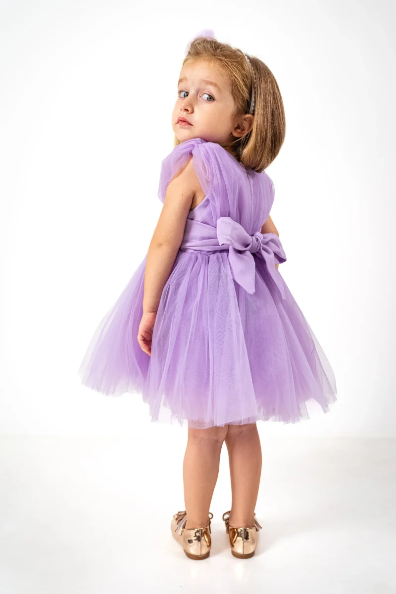 Vesti la tua piccola farfalla con l’abito Butterfly! Realizzato in morbido tulle con corpetto in satin e cintura in vita in tulle, questo abito offre un look elegante e comodo. Con una gonna effetto tutù e chiusura con cerniera posteriore e cintura in satin, sarà la scelta perfetta per ogni occasione speciale.