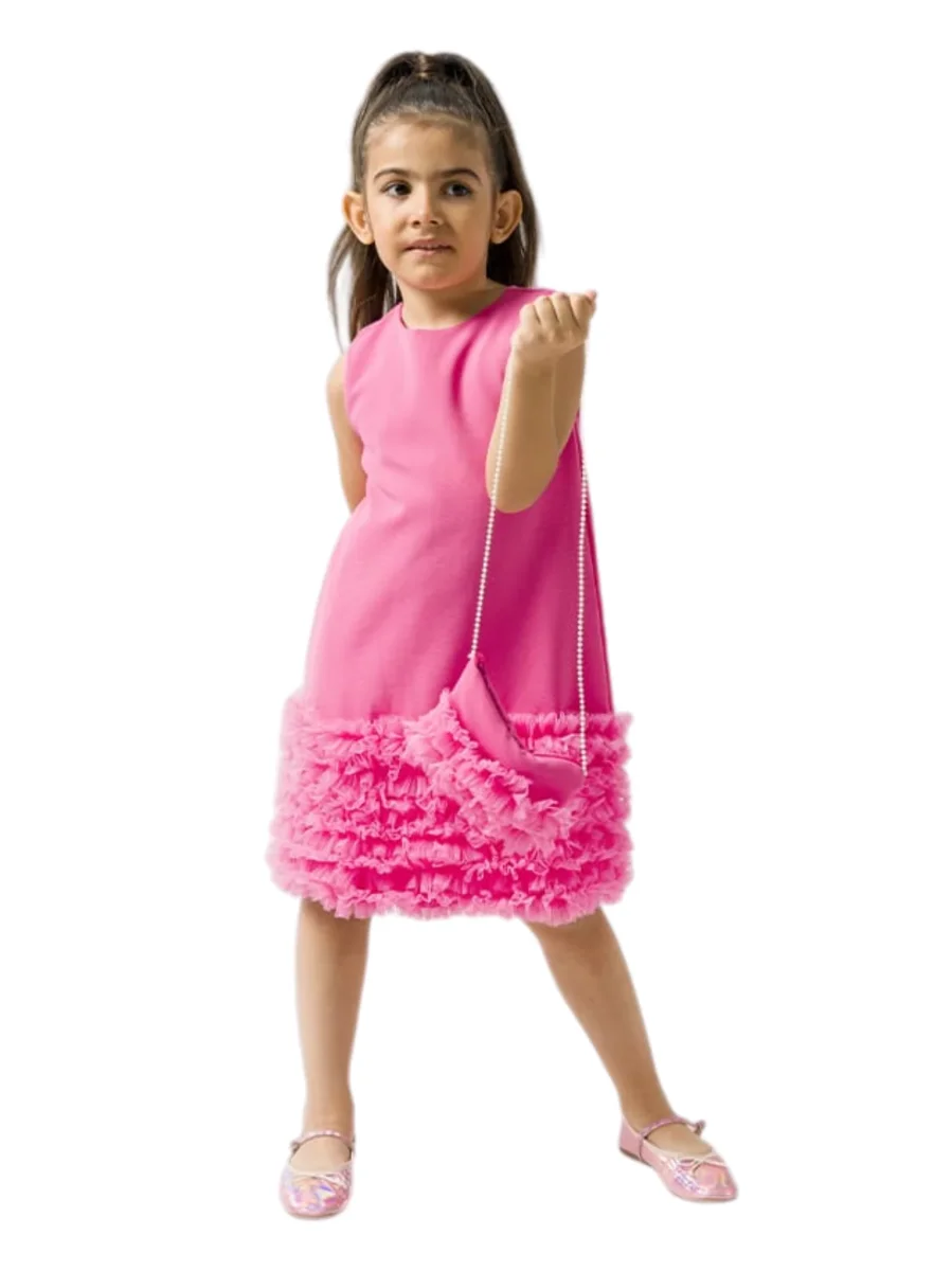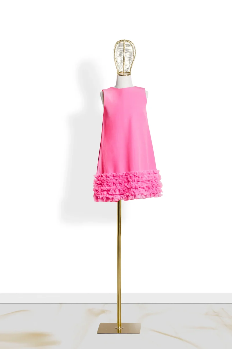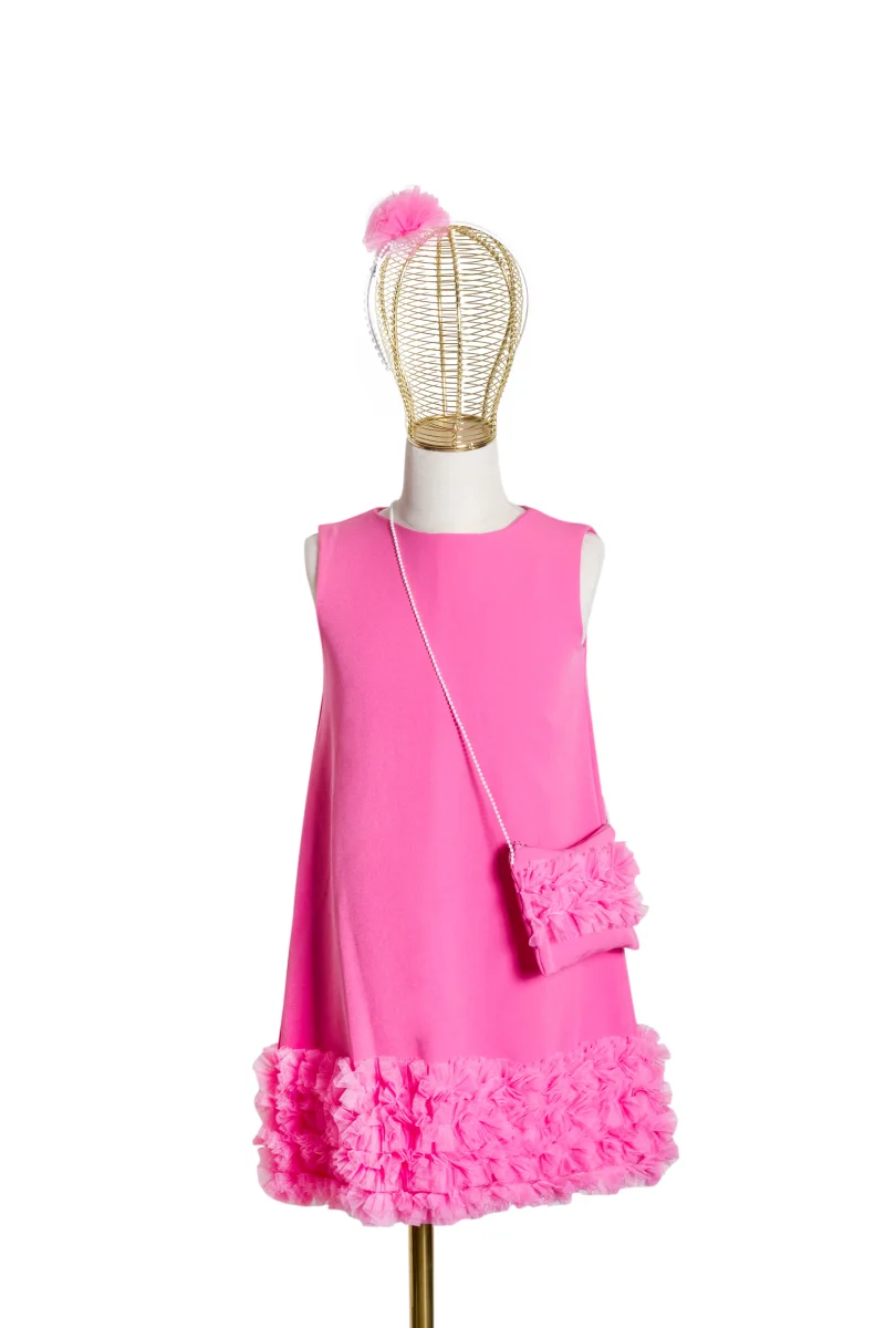 Questo abito in tulle per bambina ha un’elegante vestibilità a campana con rouche di tulle in basso, che conferisce un look chic e retrò ispirato agli anni ’60. La chiusura con lampo posteriore rende l’abito facile da indossare. Perfetto per una piccola principessa!