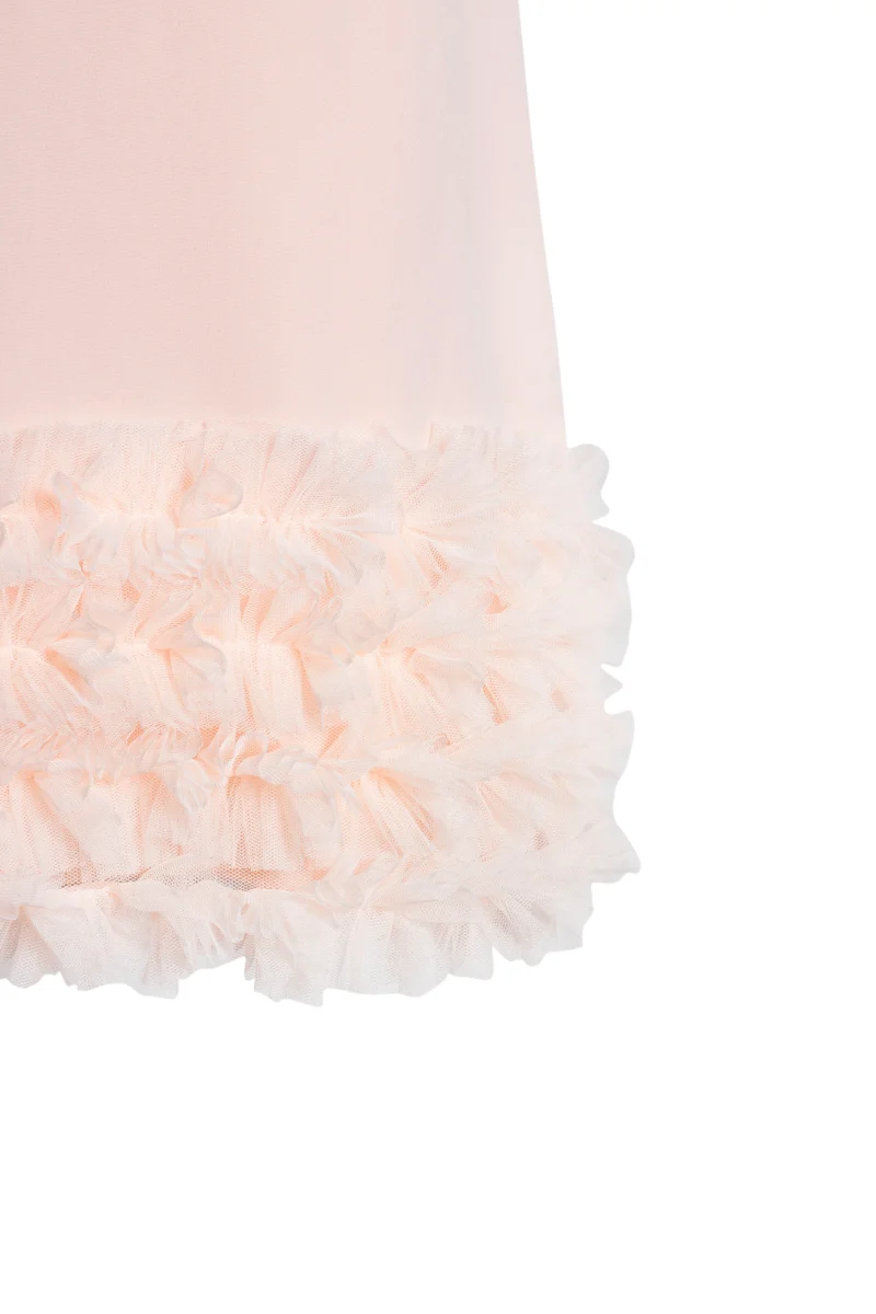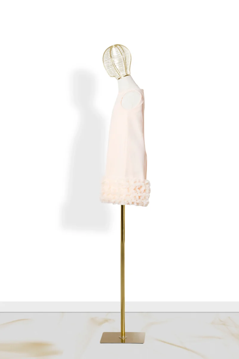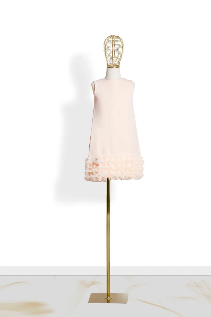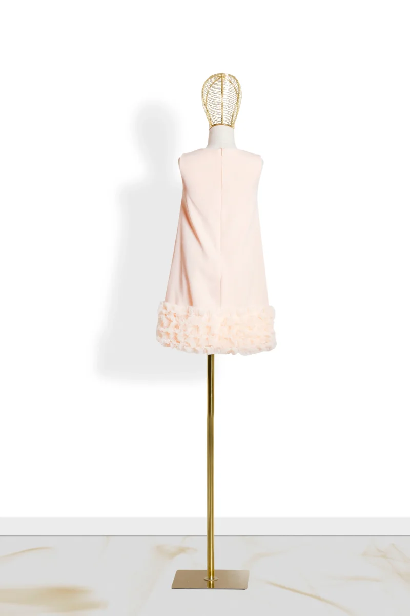 Questo abito in tulle per bambina ha un’elegante vestibilità a campana con rouche di tulle in basso, che conferisce un look chic e retrò ispirato agli anni ’60. La chiusura con lampo posteriore rende l’abito facile da indossare. Perfetto per una piccola principessa!