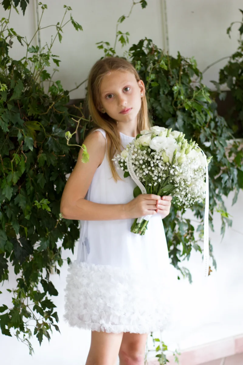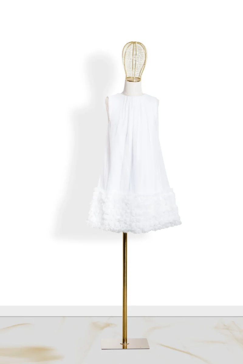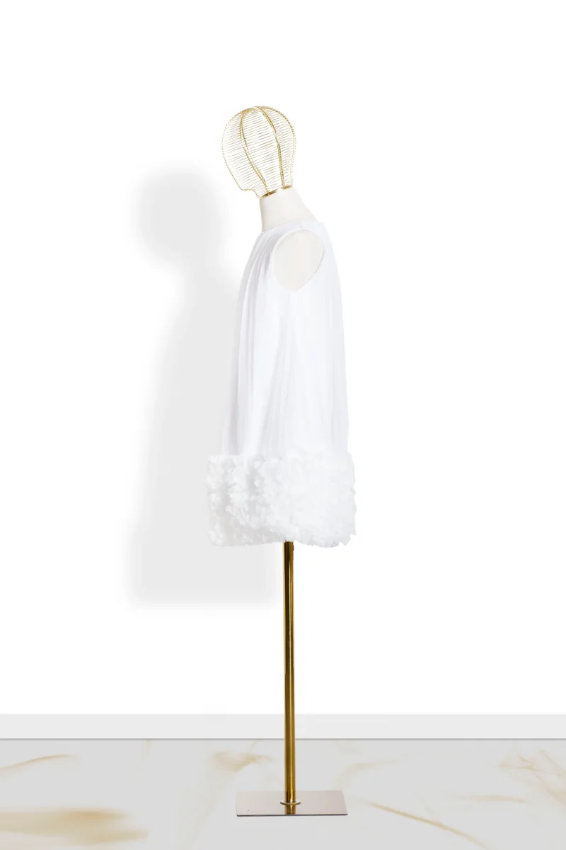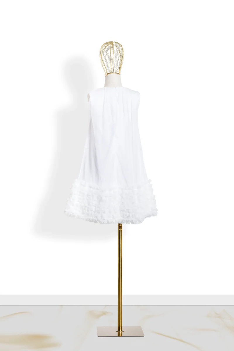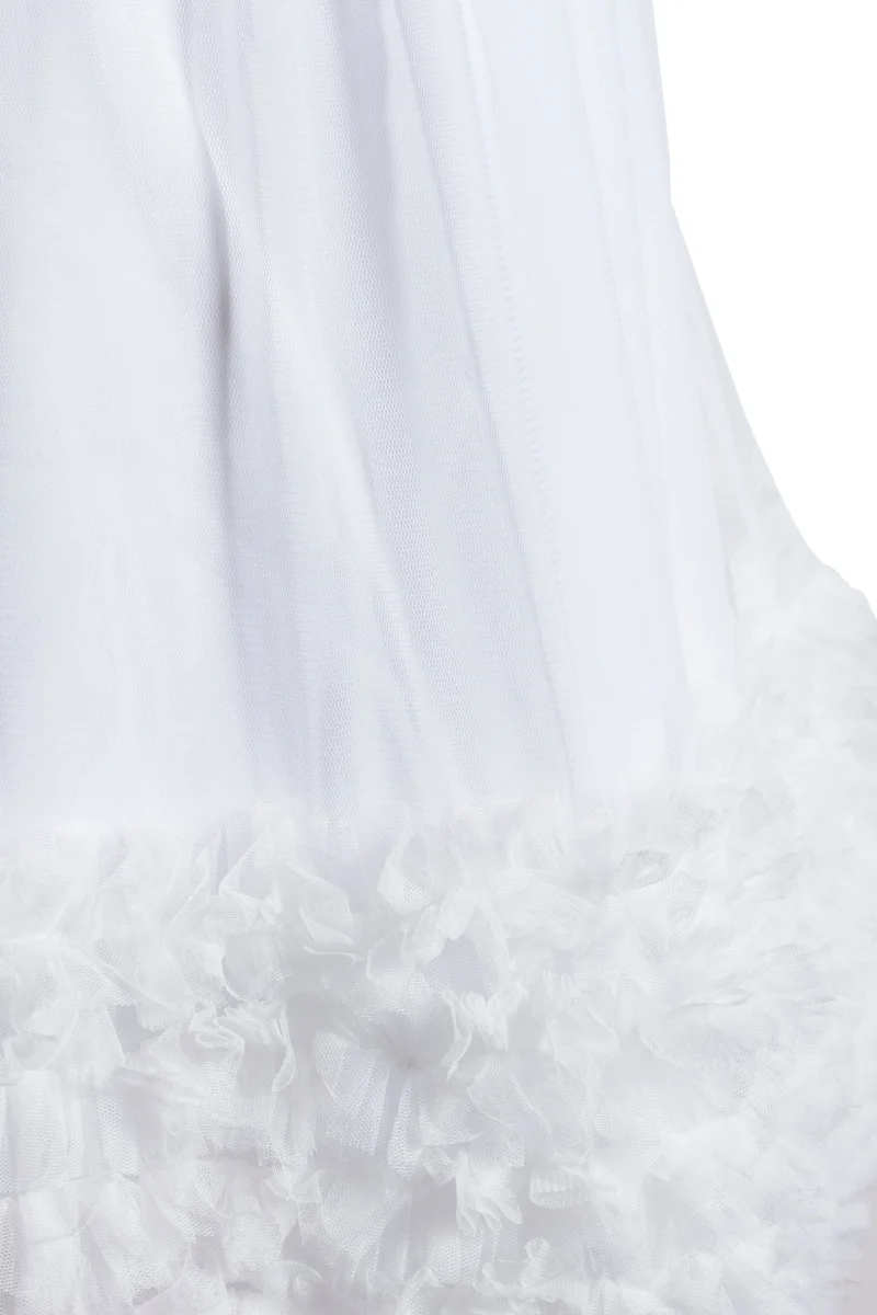 Questo abito in tulle bianco per bambina ha un’elegante vestibilità a campana con rouche di tulle in basso, che conferisce un look chic e retrò ispirato agli anni ’60. La chiusura con lampo posteriore rende l’abito facile da indossare. Perfetto per una piccola principessa!