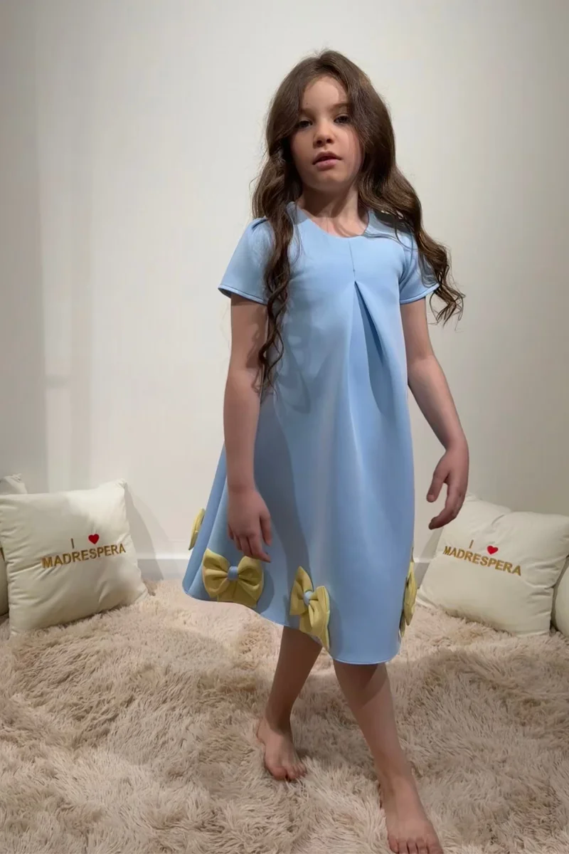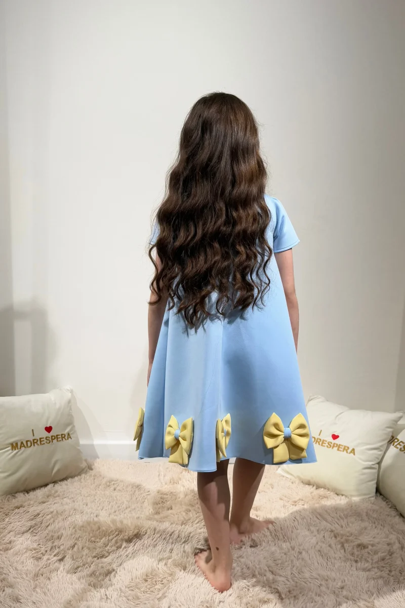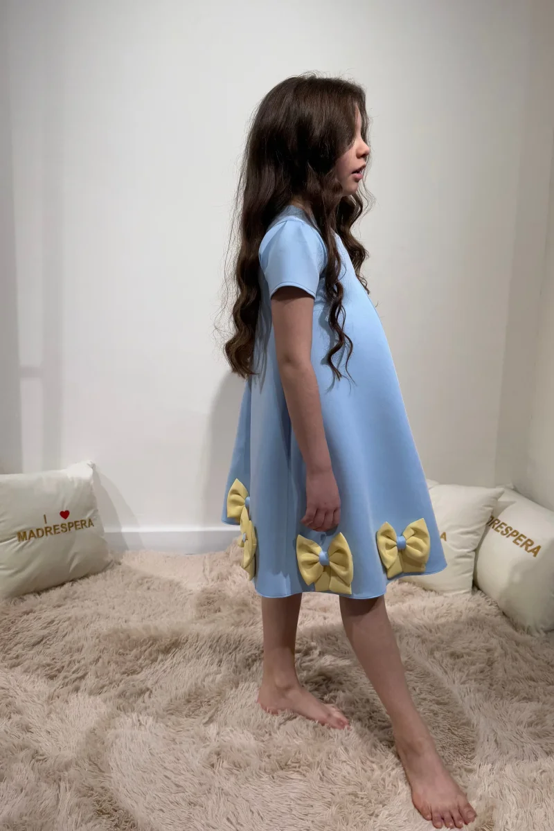 Sfizioso e delicato, l’Abito Bambina Polvere è l’ideale per feste e occasioni speciali. Il design color polvere a mezza manica è arricchito da fiocchi color giallo, mentre la chiusura posteriore con cerniera offre facilità di indossamento. Perfetto per far brillare la tua piccola principessa!