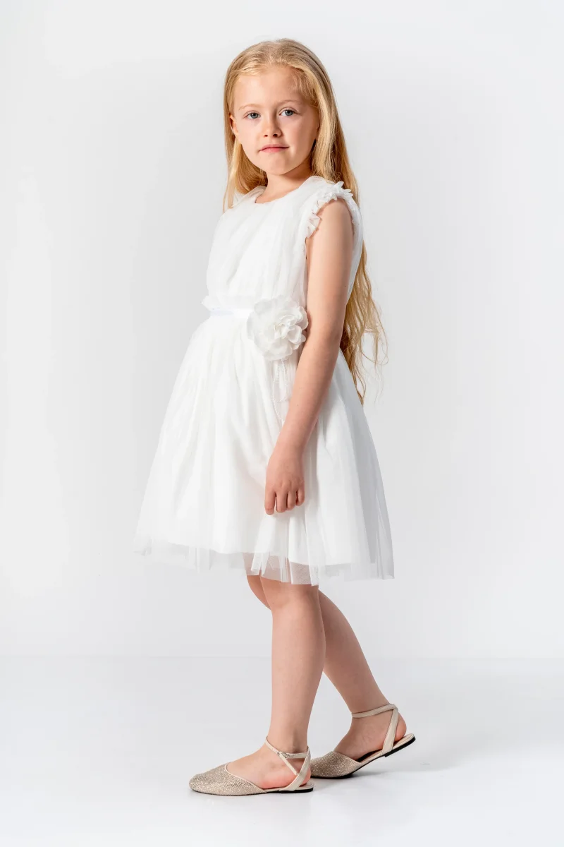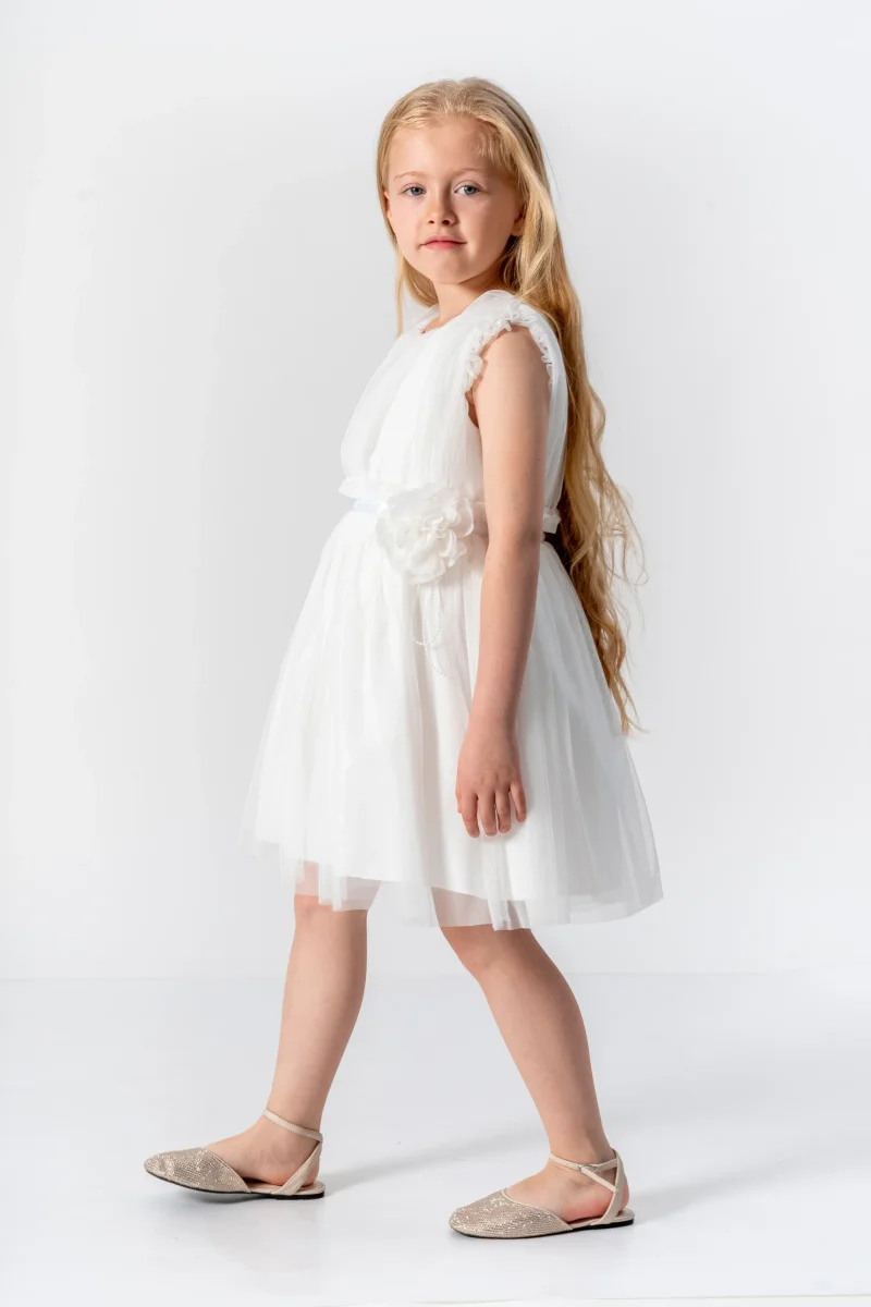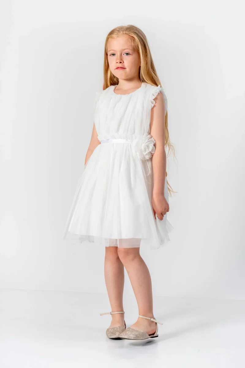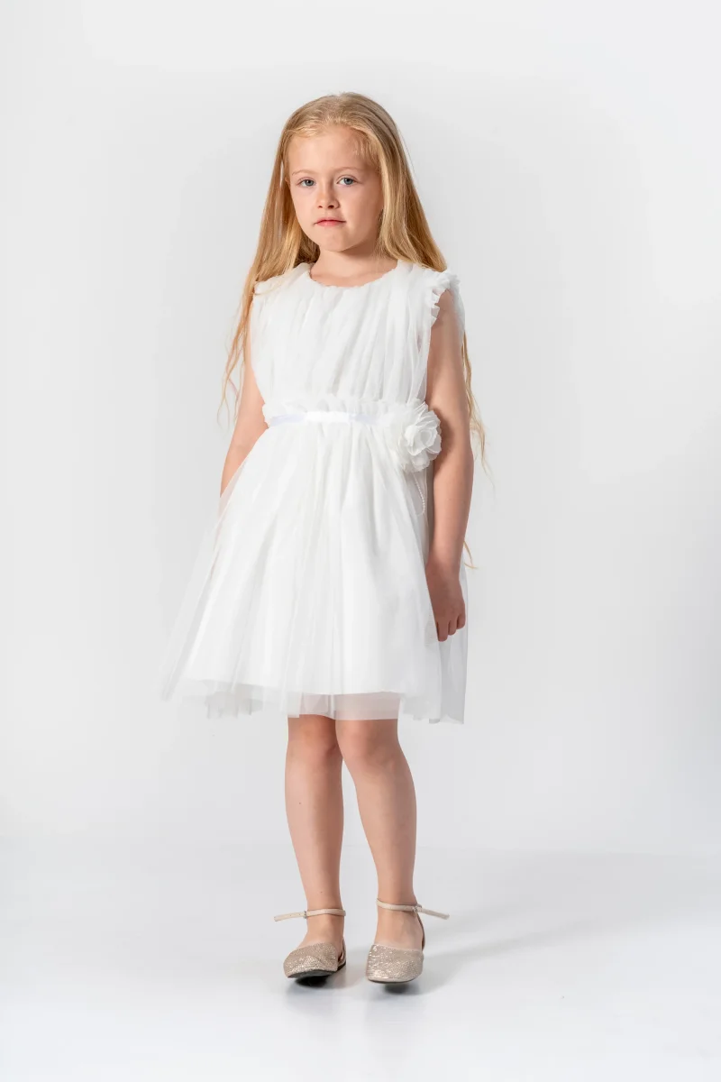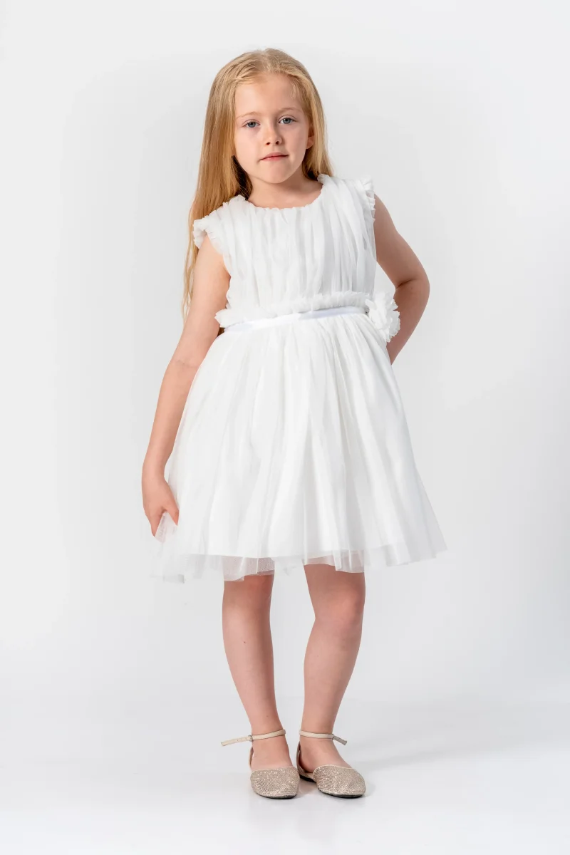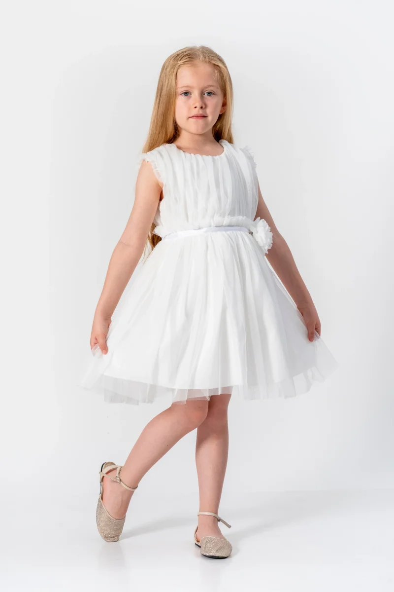 Dai al tuo piccolo fiore una sensazione romantica con l’Abito Bambina Romantico Fiore. Dotato di una cintura in vita in raso e di un grazioso fiocco in tulle, questo abito in tulle veste con eleganza e femminilità. Con le maniche giromanica e la comoda chiusura posteriore con cerniera, la tua bambina sarà pronta per ogni occasione speciale!