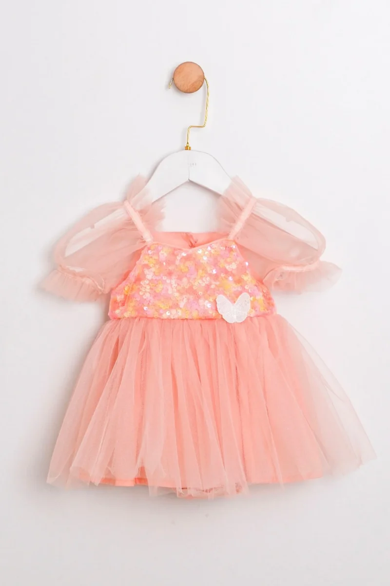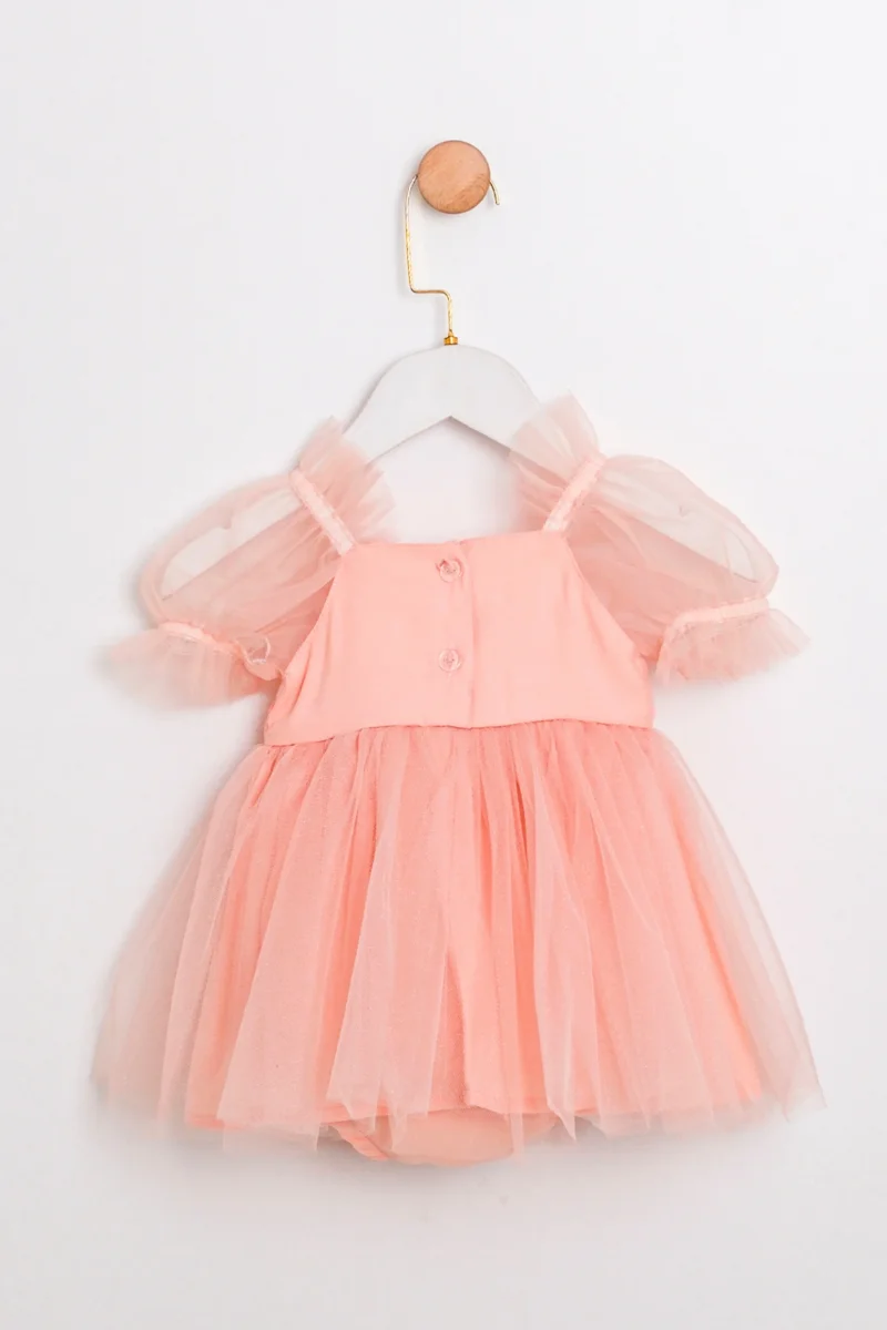 Eleganza audace per le tue piccole principesse. Questo abito body neonata combina cotone morbido e tulle etéreo, con chiusura posteriore a bottoni per un cambio pratico. Le paillettes multicolor sul petto catturano la luce con un tocco di glamour, mentre le maniche in tulle aggiungono movimento e raffinatezza.