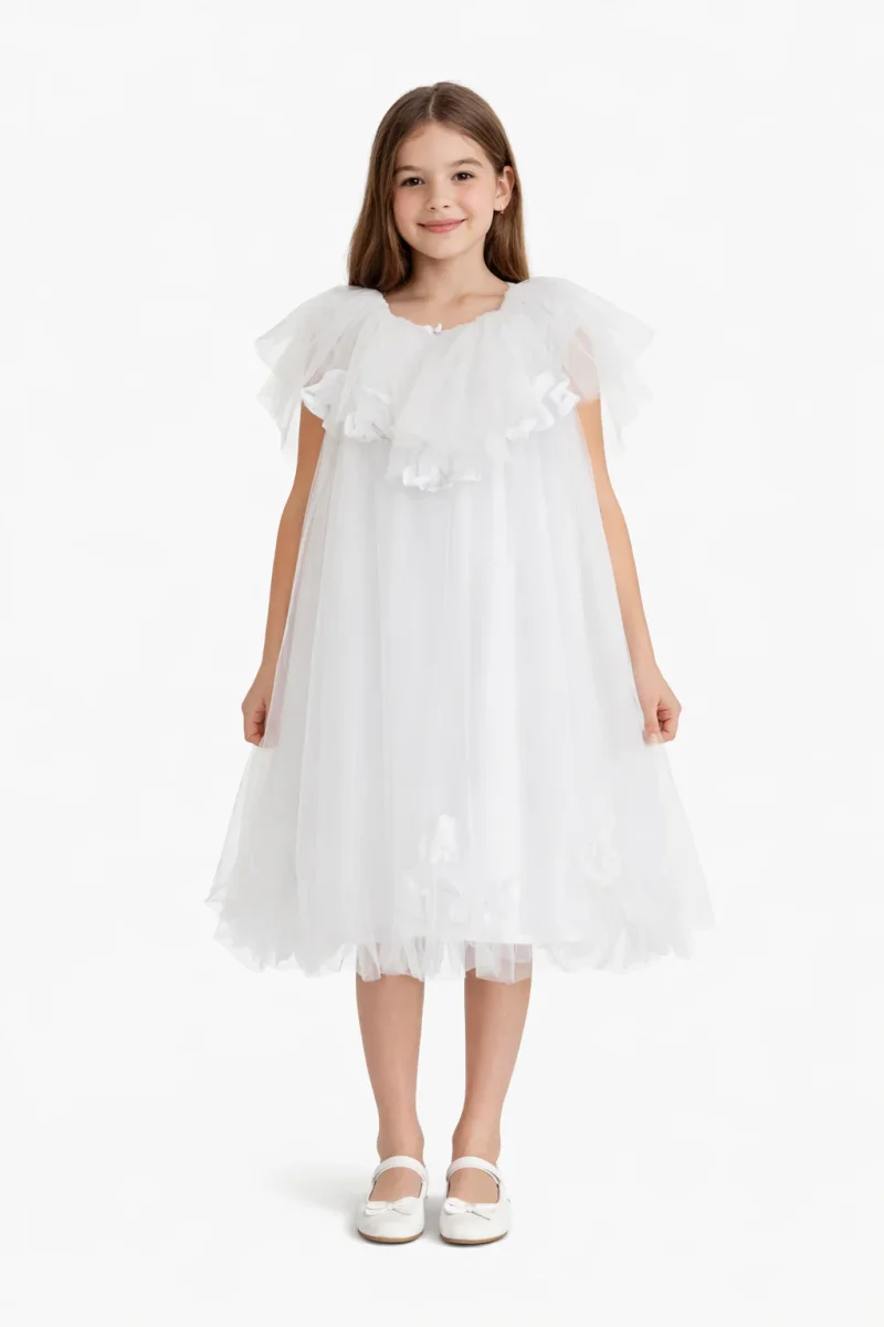 Abito Comunione Bambina Bianco Palloncino e Fiori