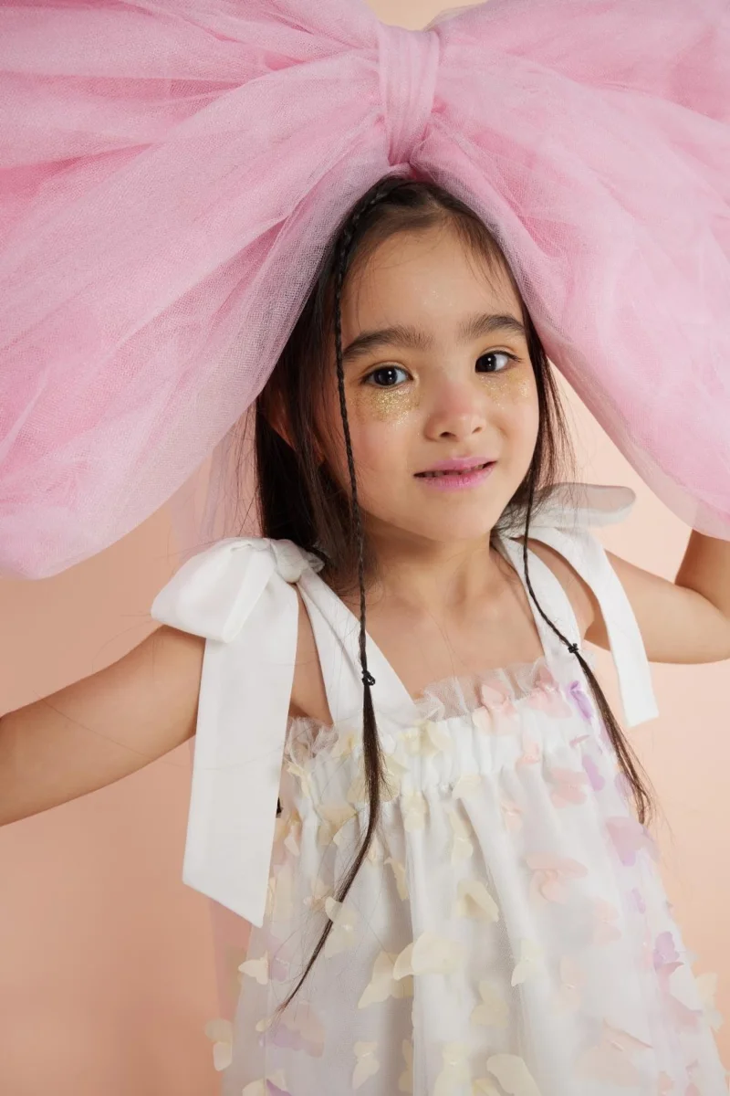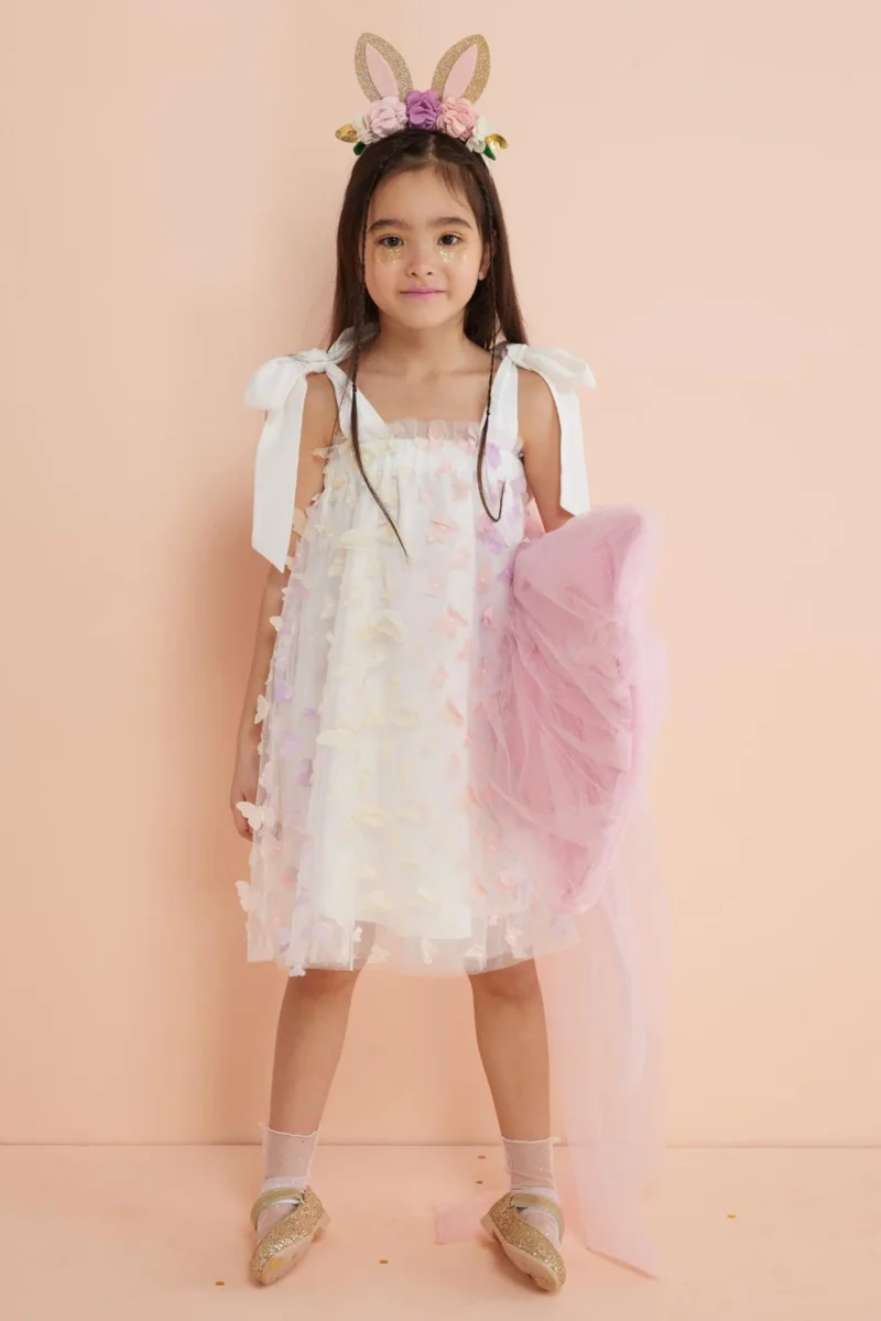 Vivi il sogno con l’abito Dream Bambina! Morbido e confortevole, con dettagli di farfalle ricamate e corpetto elasticizzato, questo abito è perfetto per far volare l’immaginazione delle bambine. Dallo stile unico e regolabile con i fiocchi sulle spalle, è l’abito perfetto per le giovani avventuriere.