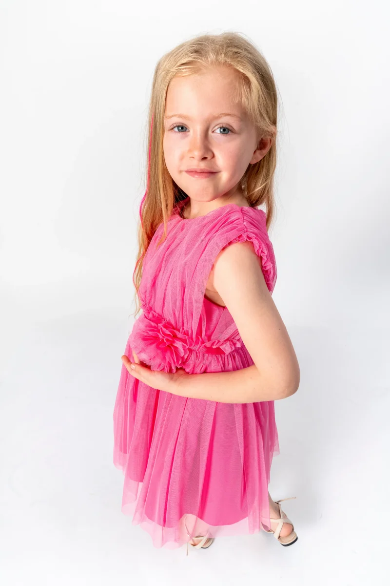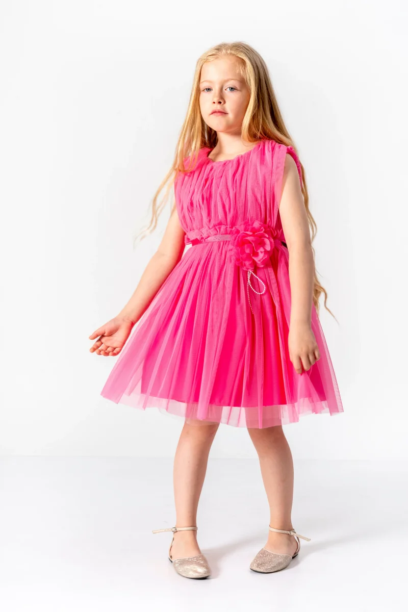 Dai al tuo piccolo fiore una sensazione romantica con l’Abito Bambina Romantico Fiore. Dotato di una cintura in vita in raso e di un grazioso fiocco in tulle, questo abito in tulle veste con eleganza e femminilità. Con le maniche giromanica e la comoda chiusura posteriore con cerniera, la tua bambina sarà pronta per ogni occasione speciale!