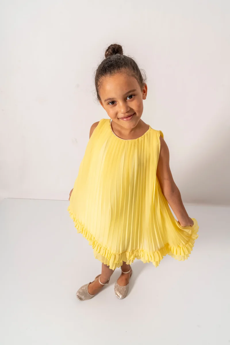 Abito Giallo Bambina Plissè