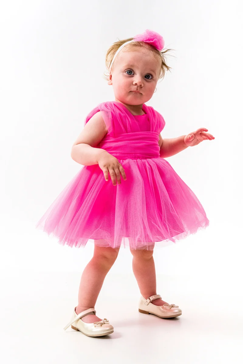 Vesti la tua piccola farfalla con l’abito neonata Butterfly! Realizzato in morbido tulle con corpetto in satin e cintura in vita in tulle, questo abito offre un look elegante e comodo. Con una gonna effetto tutù e chiusura con cerniera posteriore e cintura in satin, sarà la scelta perfetta per ogni occasione speciale.
