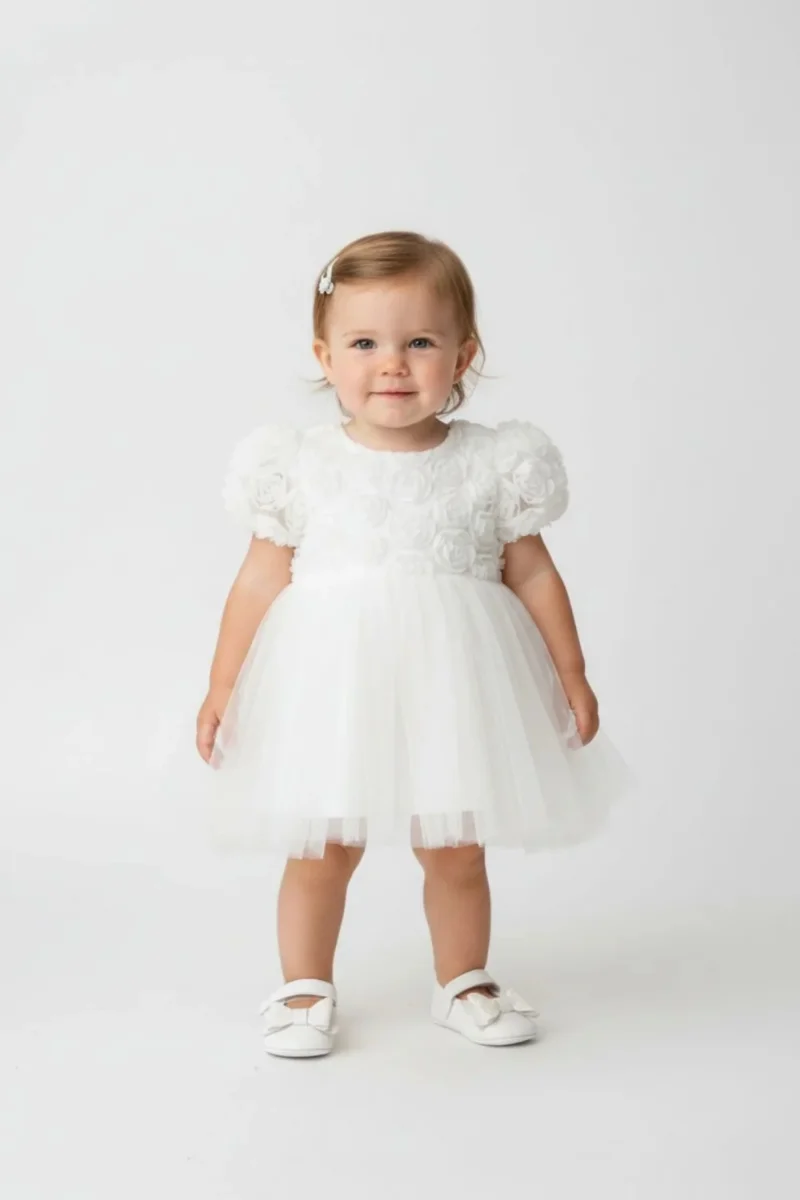 Audacia e grazia si incontrano in questo abito da neonata che sfida le convenzioni. Corpetto ornato di rose ricamate con precisione artigianale, gonna in tulle che cattura la luce con movimento naturale. La fodera in cotone puro avvolge la pelle delicata, mentre la chiusura lampo posteriore offre praticità senza sacrificare lo stile. Un capolavoro per le piccole protagoniste di momenti straordinari—battesimi, cerimonie, celebrazioni dove la bellezza non ha limiti.