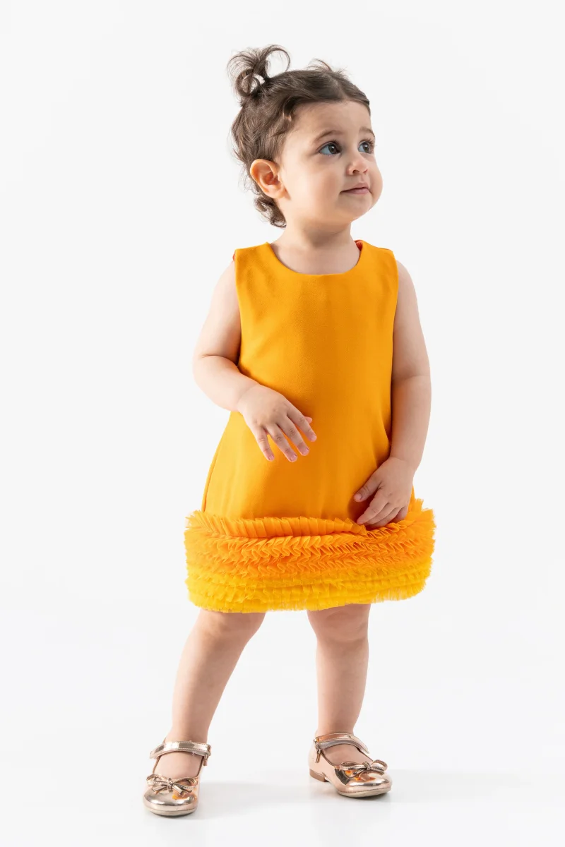 Abito Arancio Bambina Monospalla Tulle