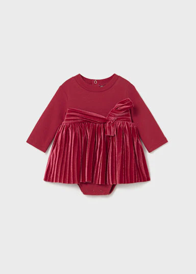 Pagliaccetto manica lunga per neonata. Dolcevita. Chiusura con bottoni a pressione nella parte posteriore. Chiusura con bottoni a pressione nell’interno cosce per agevolare la vestibilità. Confezione in diversi tessuti per ottenere un design unico e speciale. Elementi decorativi: fiocco.