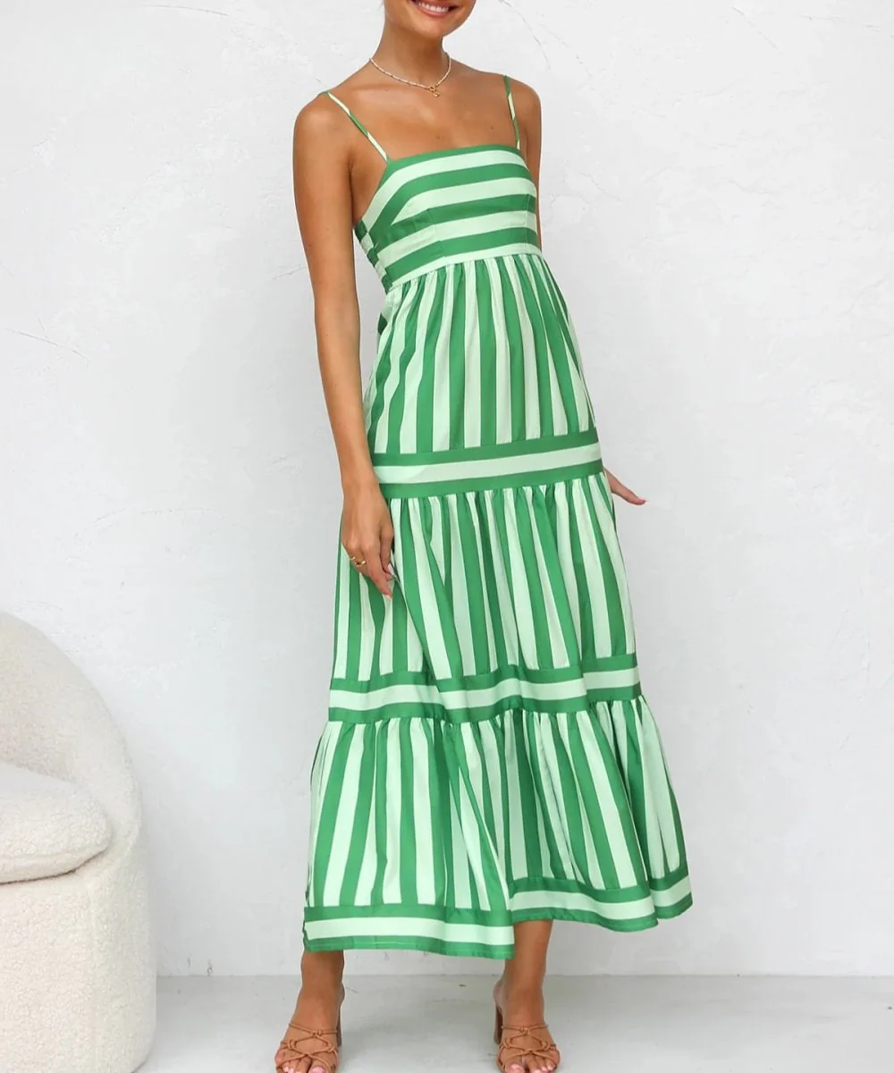 Il nostro abito a righe Agata incarna l’eleganza senza tempo con un tocco moderno. Grazie alla vestibilità ampia, questo abito è comodo per ogni tipo di corpo ed è quindi il complemento perfetto per ogni guardaroba.