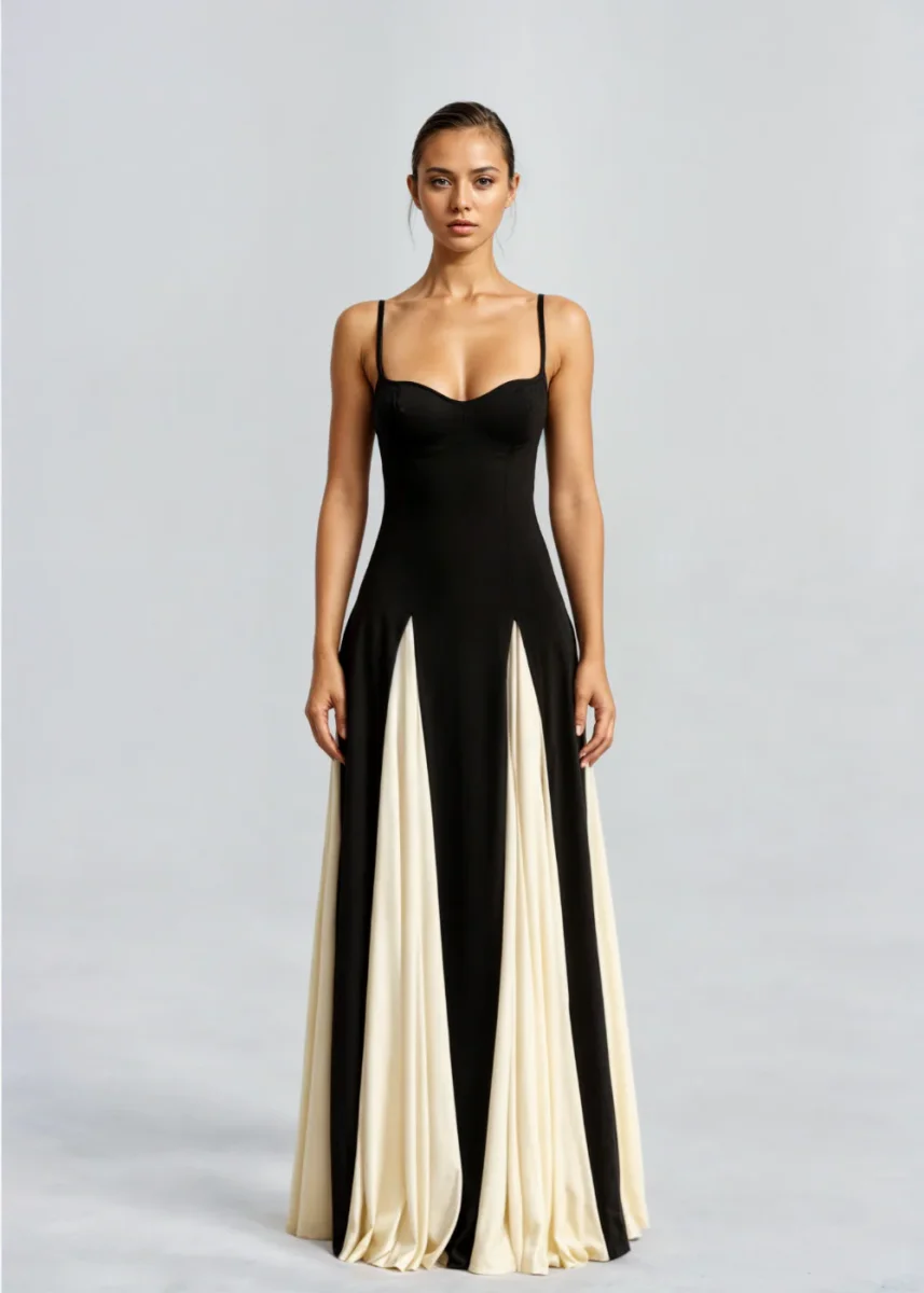 - Stile: maxi abito scorrevole
