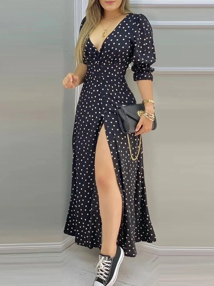 Amara | Abito spaccato a pois eleganti