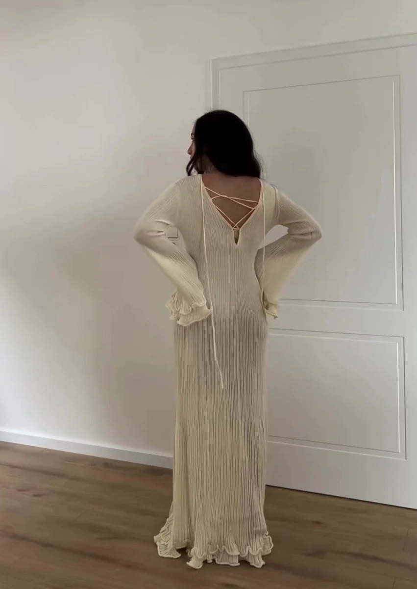 Ambra | Abito Maxi Elegante in Tessuto Lussuoso con Maniche Lunghe