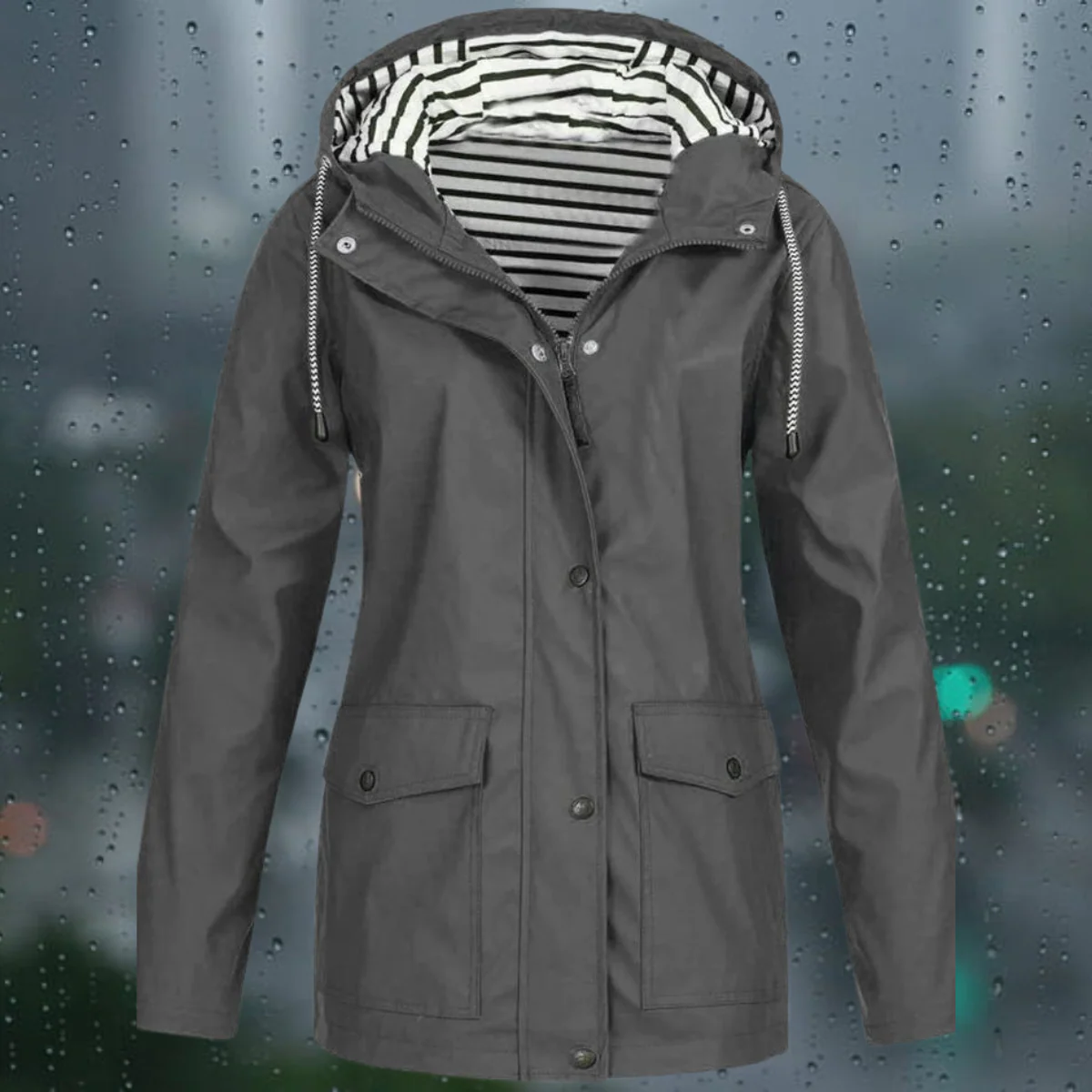 • Protezione Contro il Vento: Il design con cappuccio e il tessuto resistente proteggono dalle intemperie.