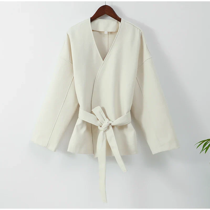 Aria | Cappotto in lana con scollo a V in stile moderno