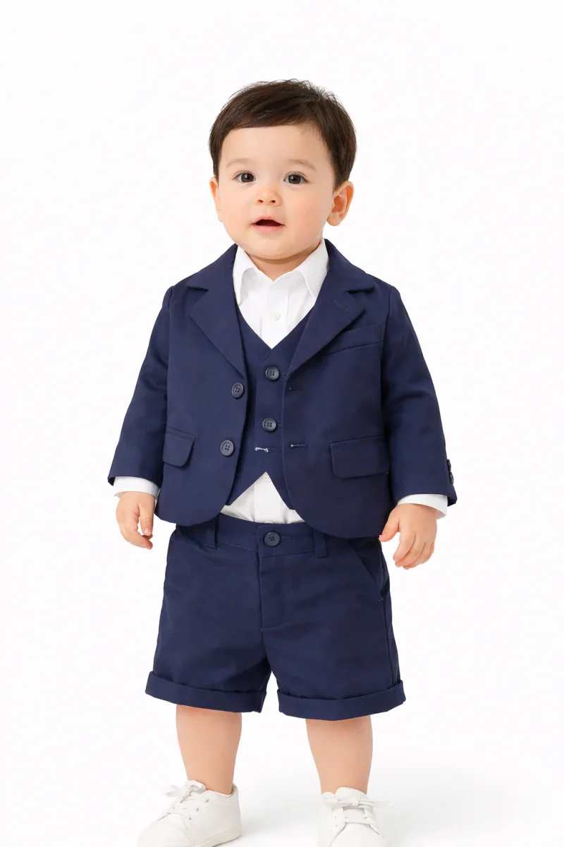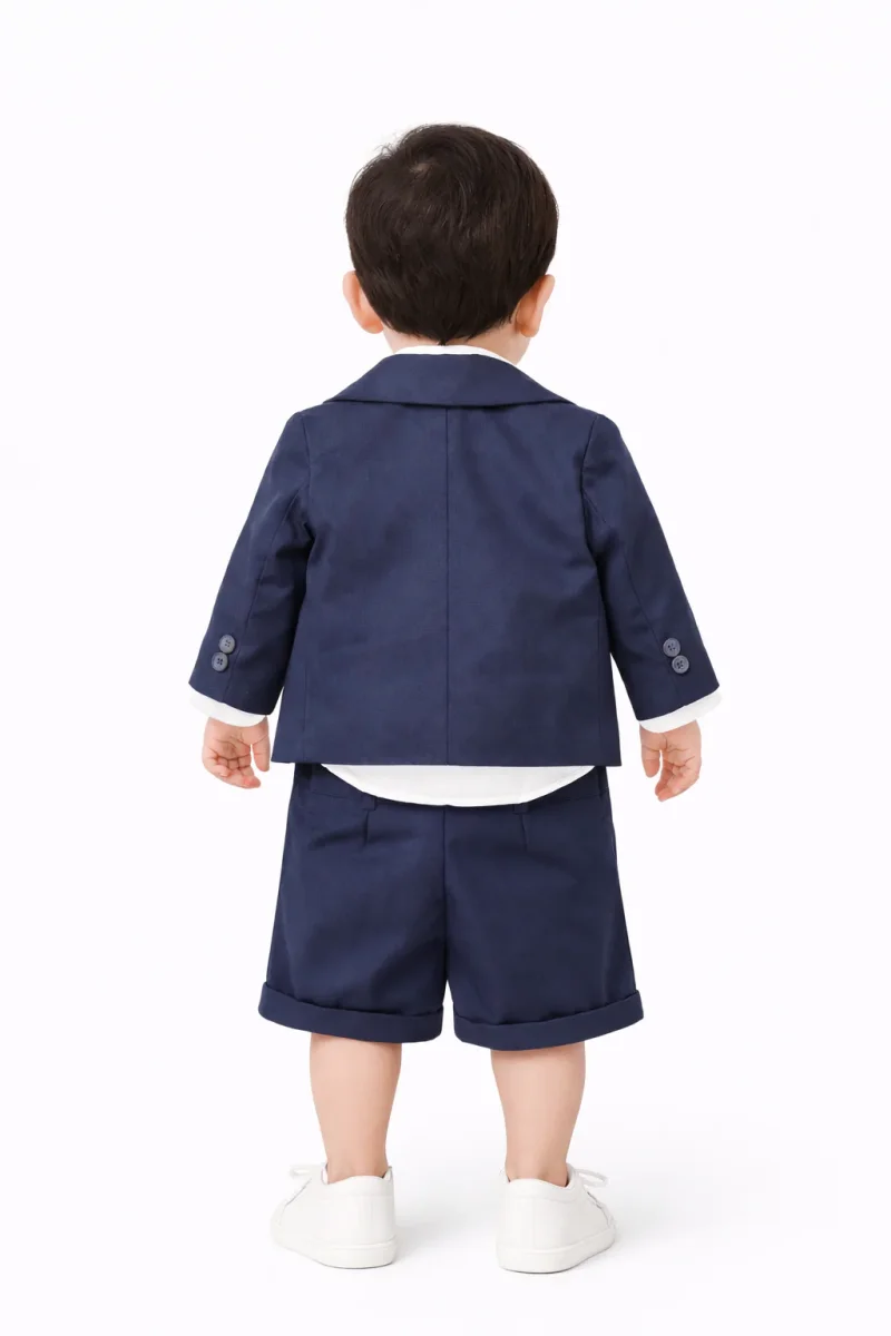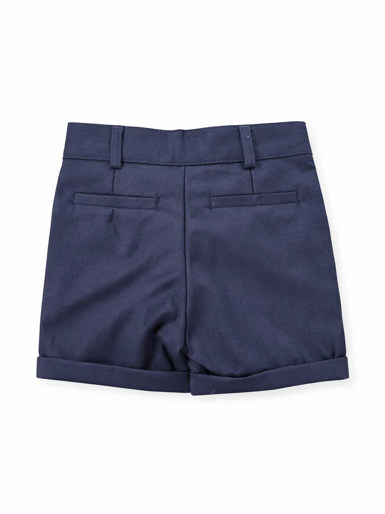 Bermuda sartoriale che cattura l’essenza del lusso infantile. Realizzata in cotone e raso, questa silhouette conquista con una vestibilità regolare che garantisce comfort senza compromessi. I regolatori interni assicurano una calzata impeccabile, permettendo al piccolo di muoversi con libertà. Il blu notte profondo evoca eleganza sofisticata, perfetto per battesimi e occasioni speciali dove il dettaglio fa la differenza. Un capo che unisce artigianalità e praticità, pensato per chi non scende a compromessi sulla qualità.