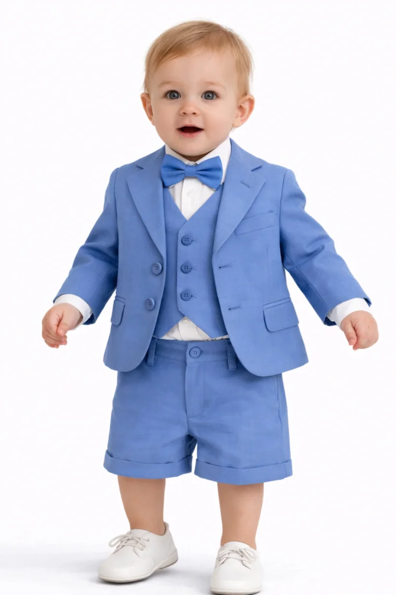 Bermuda sartoriale in cotone e raso con regolatori in vita per il battesimo del tuo neonato. Realizzate in blu royal, queste bermuda combinano eleganza formale e comfort assoluto. Il cotone respira naturalmente mentre il raso aggiunge un tocco di lusso sofisticato. I regolatori in vita garantiscono una vestibilità perfetta durante la crescita, permettendo al piccolo di muoversi liberamente senza compromessi stilistici. Un capo audace che trasforma il battesimo in un momento indimenticabile di pura classe.