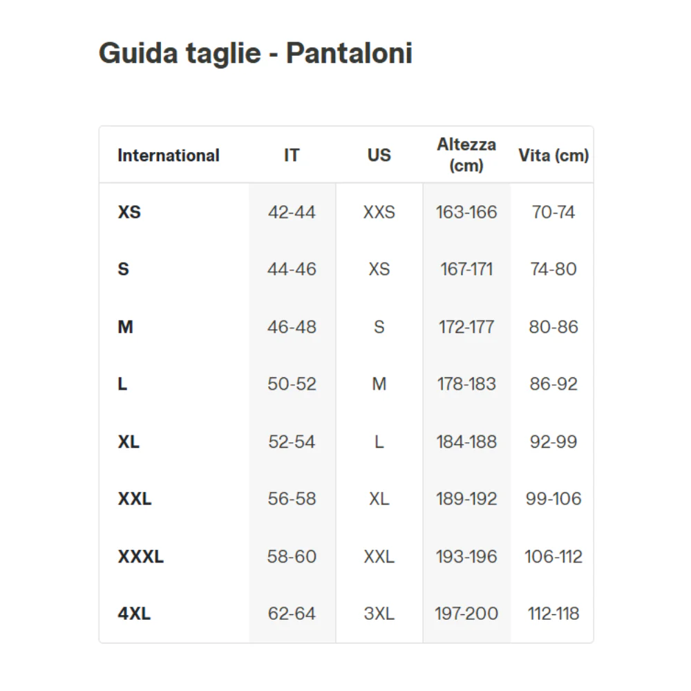 - Cintura sagomata ed inserto in materiale elastico sul cavallo per favorire la mobilità.