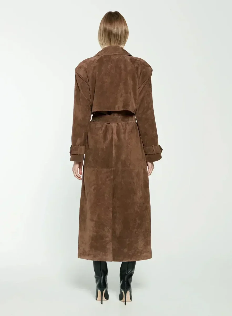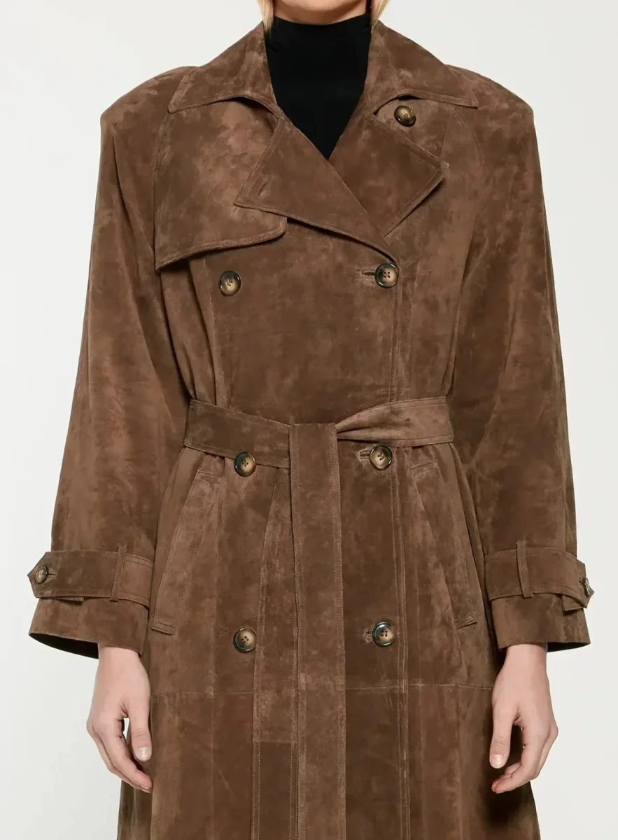 Trenchcoat elegante in pelle scamosciata per apparizioni stilose
