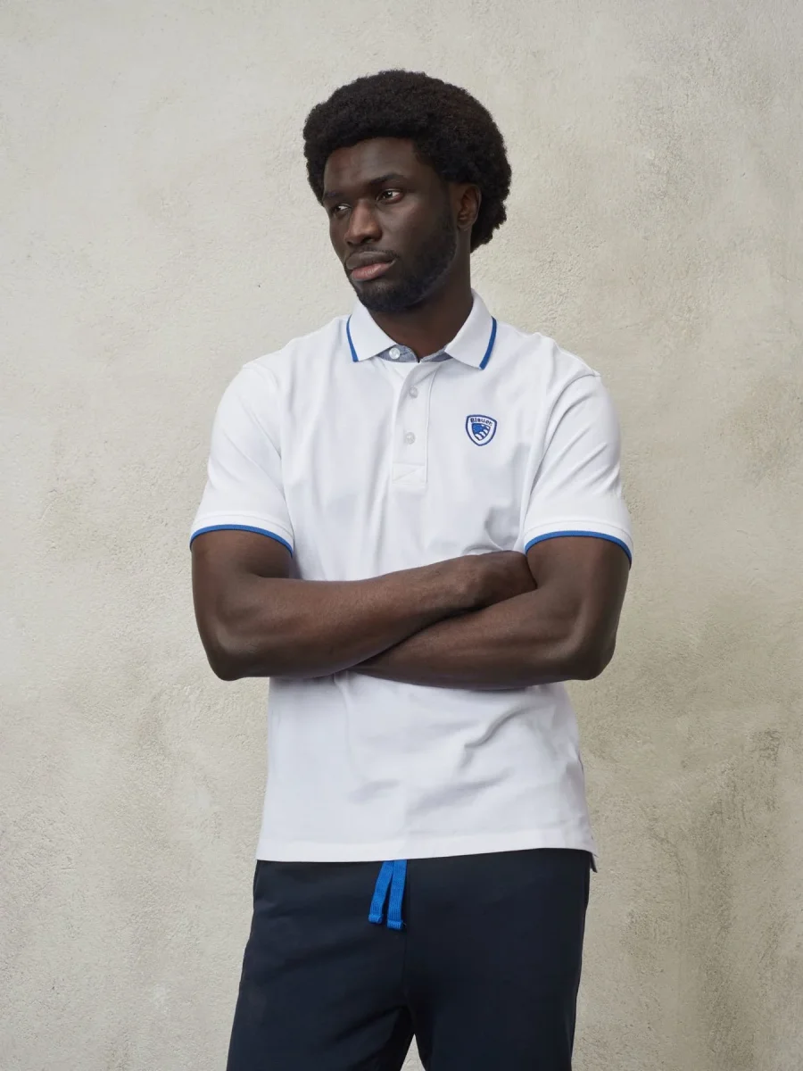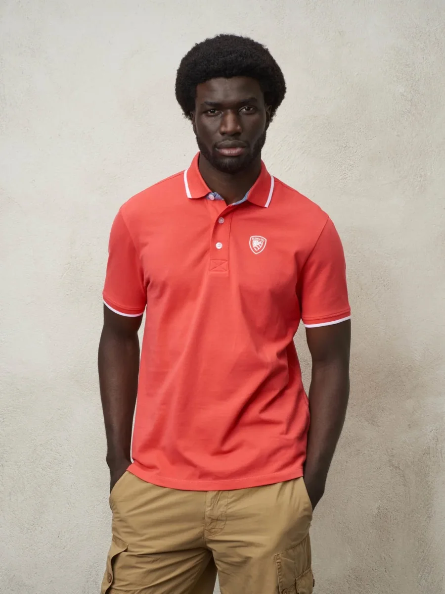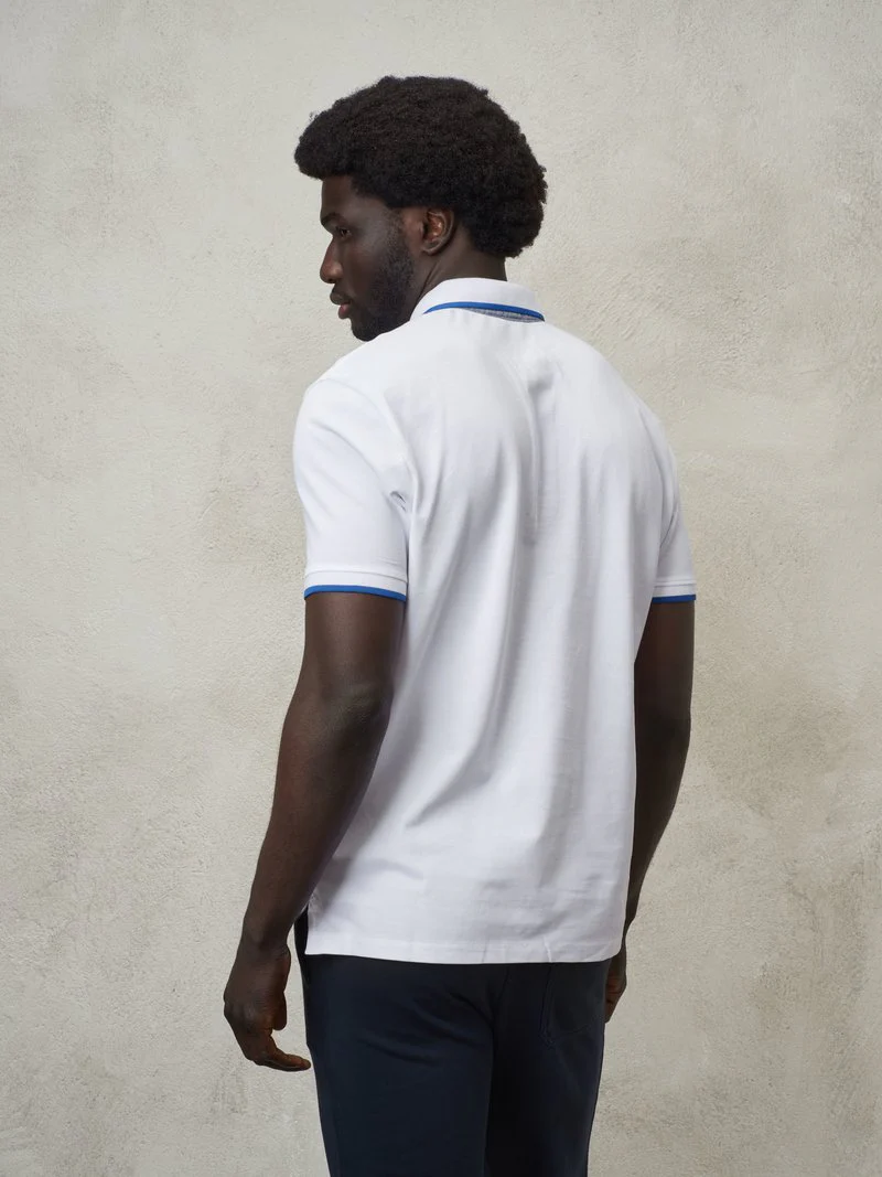 Polo uomo a manica corta in cotone piquet con collo e fondo manica in costina rigata in contrasto.
