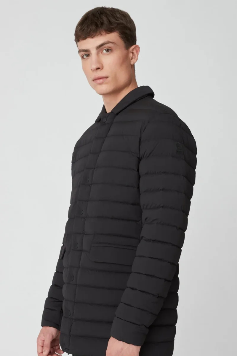 AIDAN – Cappotto lungo realizzato in tessuto nylon stretch ed imbottito in vera piuma certificata 800 fill power.