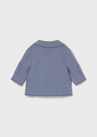 Giacca manica lunga per neonato. Colletto con risvolto. Chiusura con bottoni nella parte anteriore. Tasche funzionali nella parte anteriore. Elementi decorativi: modello con toppe sui gomiti.