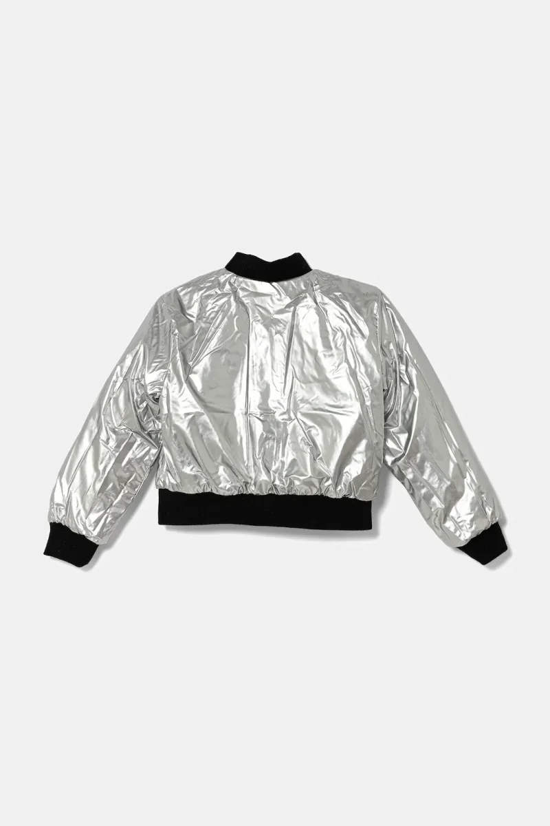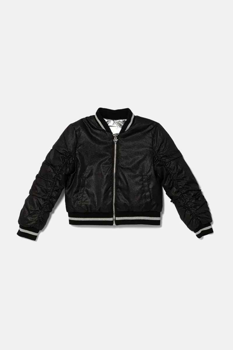 Questa giacca reversibile Guess per bambini unisce stile e praticità in un unico capo.