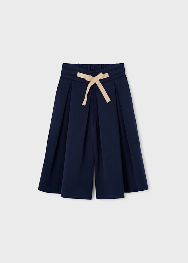 Comoda gonna pantalone per bambina. Elastico in vita. Realizzato in twill, un tessuto resistente e duraturo casual. Modello ampio. Tasche funzionali nella parte anteriore. Elementi decorativi: fiocco.