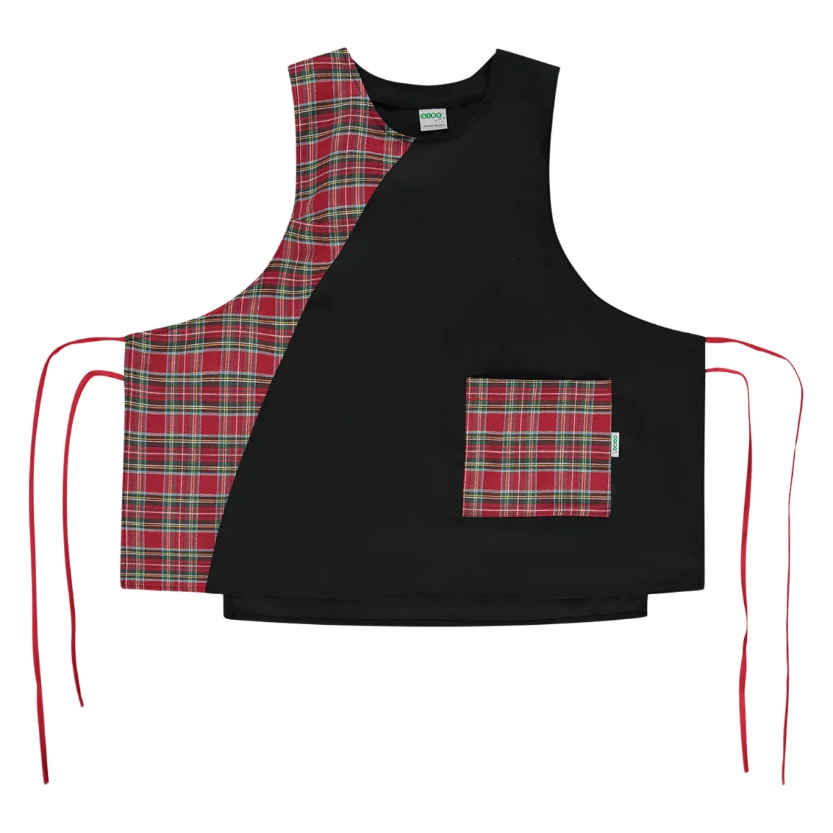 Realizzata in un elegante tessuto marrone scuro (Moro), questa pettorina è caratterizzata da un vivace inserto diagonale e una pratica tasca laterale decorati con una splendida fantasia natalizia che include omini di pan di zenzero, agrifoglio e dolciumi.