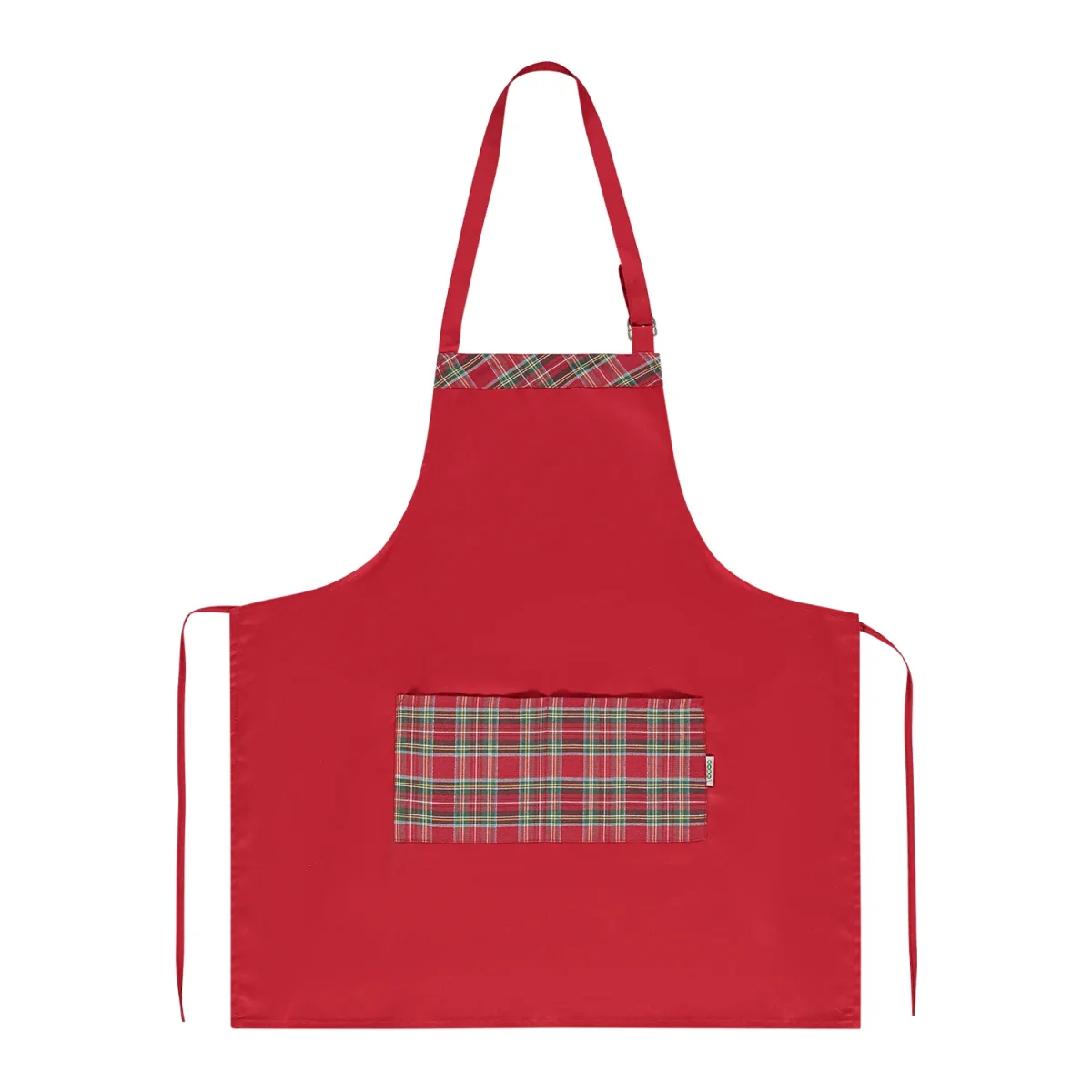 Grembiule Natalizio Rosso con Dettagli Scozzesi