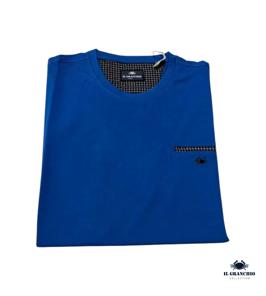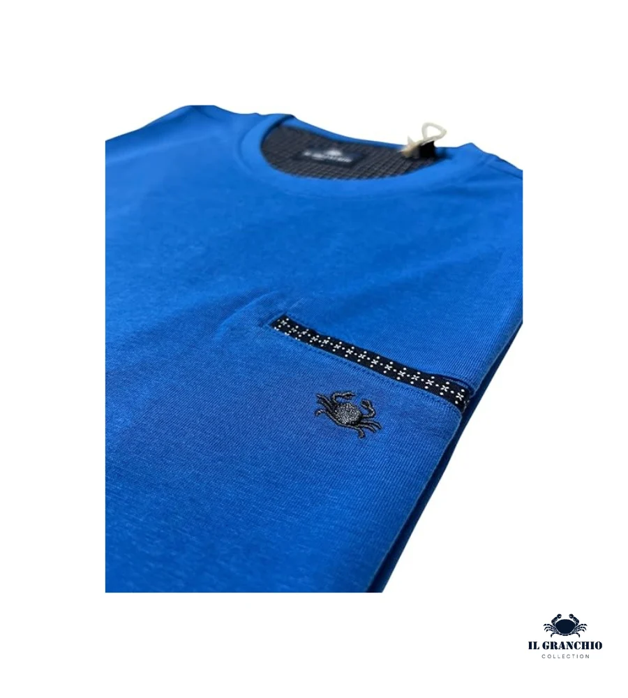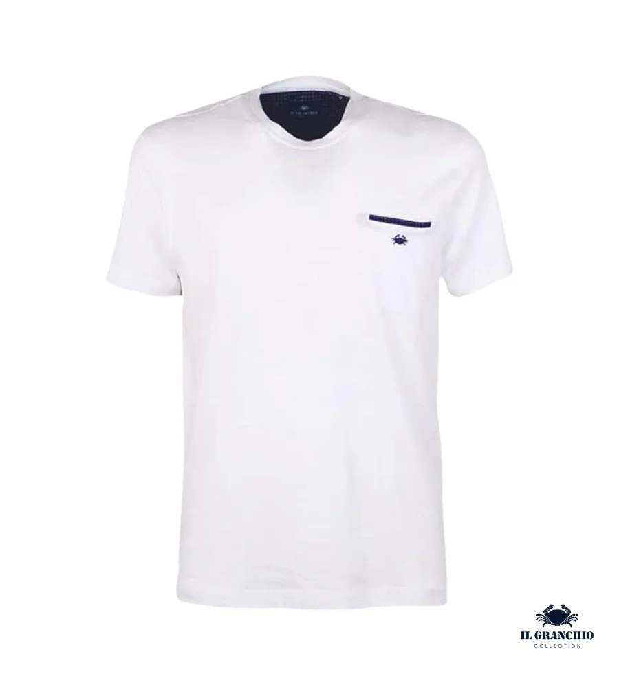 Realizzata in 100% cotone, questa t-shirt girocollo IL GRANCHIO si distingue per l’elegante logo taschino sul petto. Un capo versatile che unisce comfort e stile, perfetto per il tempo libero. Il suo design casual e sportivo la rende ideale da abbinare ai jeans, con un’estetica giovanile che non passa inosservata.