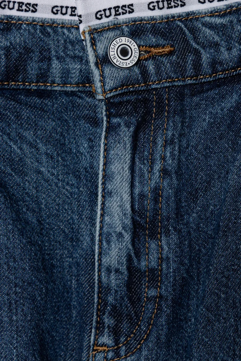 Jeans Guess a vita alta realizzato in denim a tinta unita, offre un look pulito e versatile.