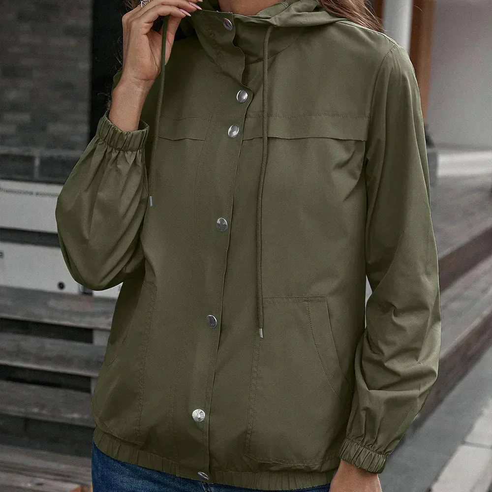 Trench impermeabile da donna con cappuccio per attività all’aperto