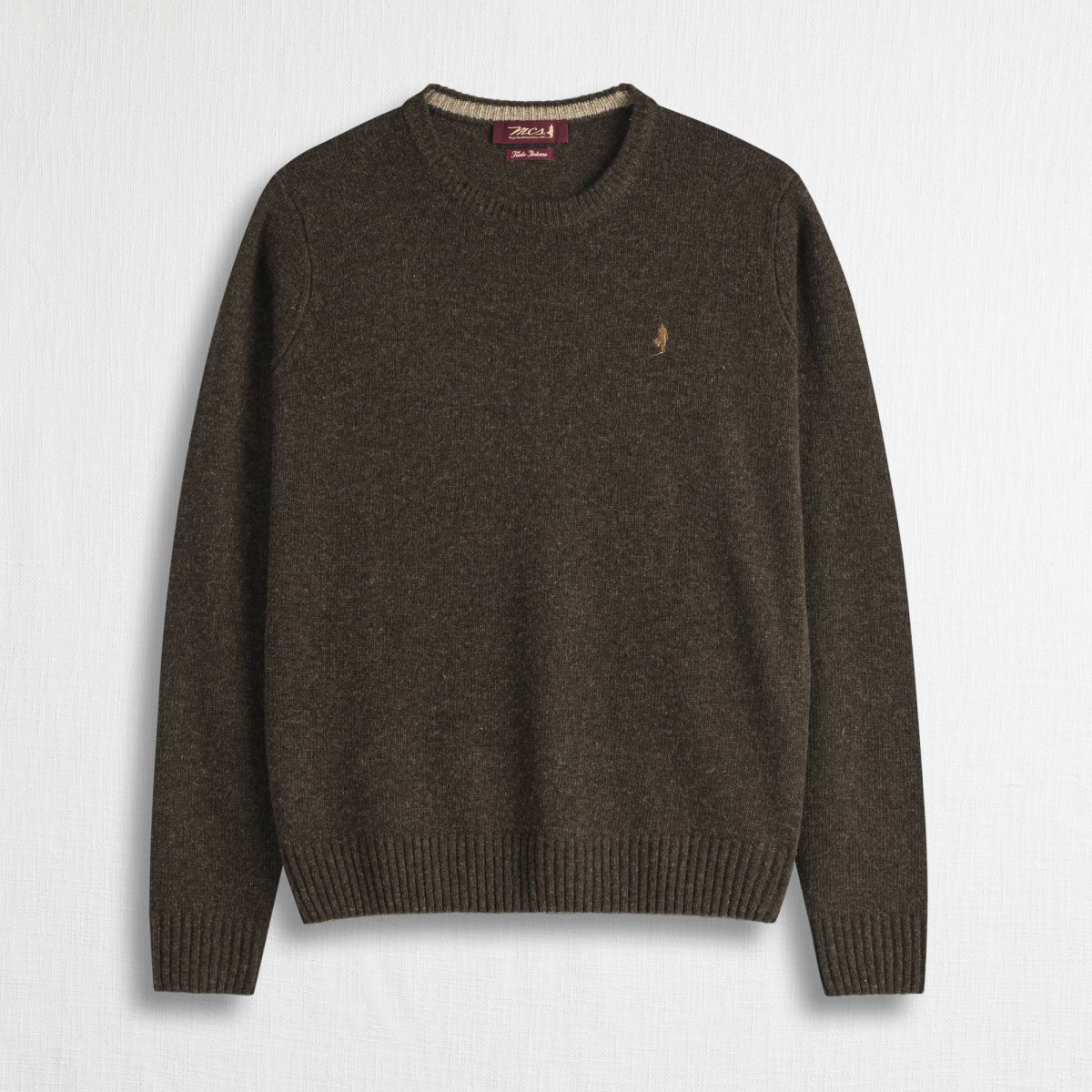 Maglia girocollo uomo tinta unita in lambswool extra fine, lavorata in finezza 7 per un aspetto compatto e morbido. Trattata con lavaggio enzimatico che ne esalta la mano calda e serica, presenta dettagli ricercati come il contrasto di colore interno al collo e il ricamo Rider sul punto cuore. Un pullover versatile che unisce comfort e stile autentico