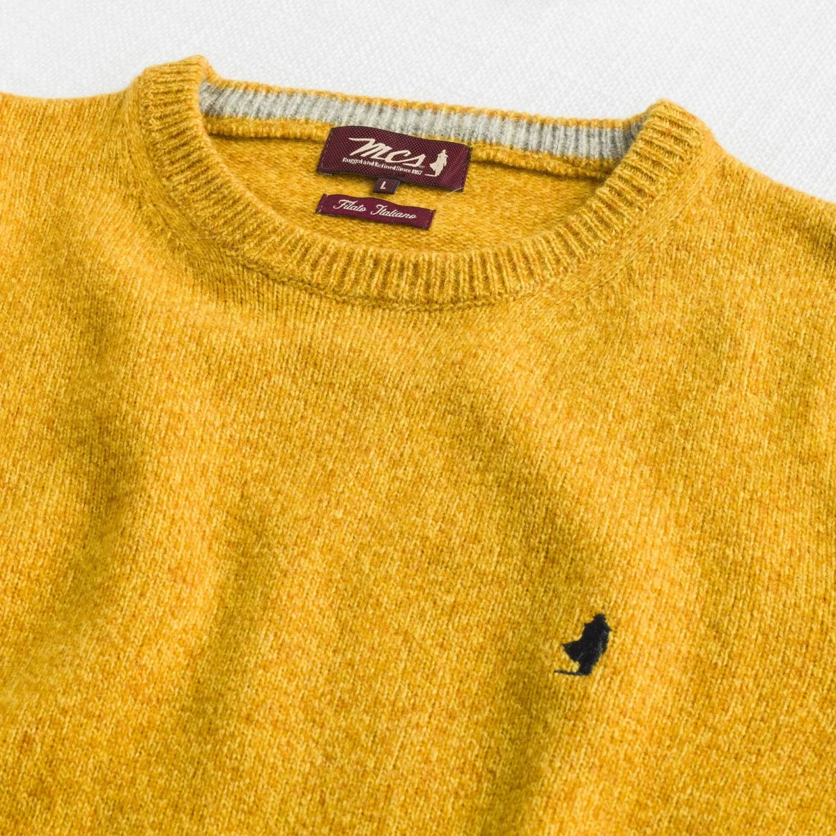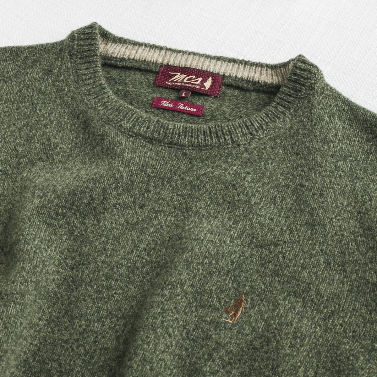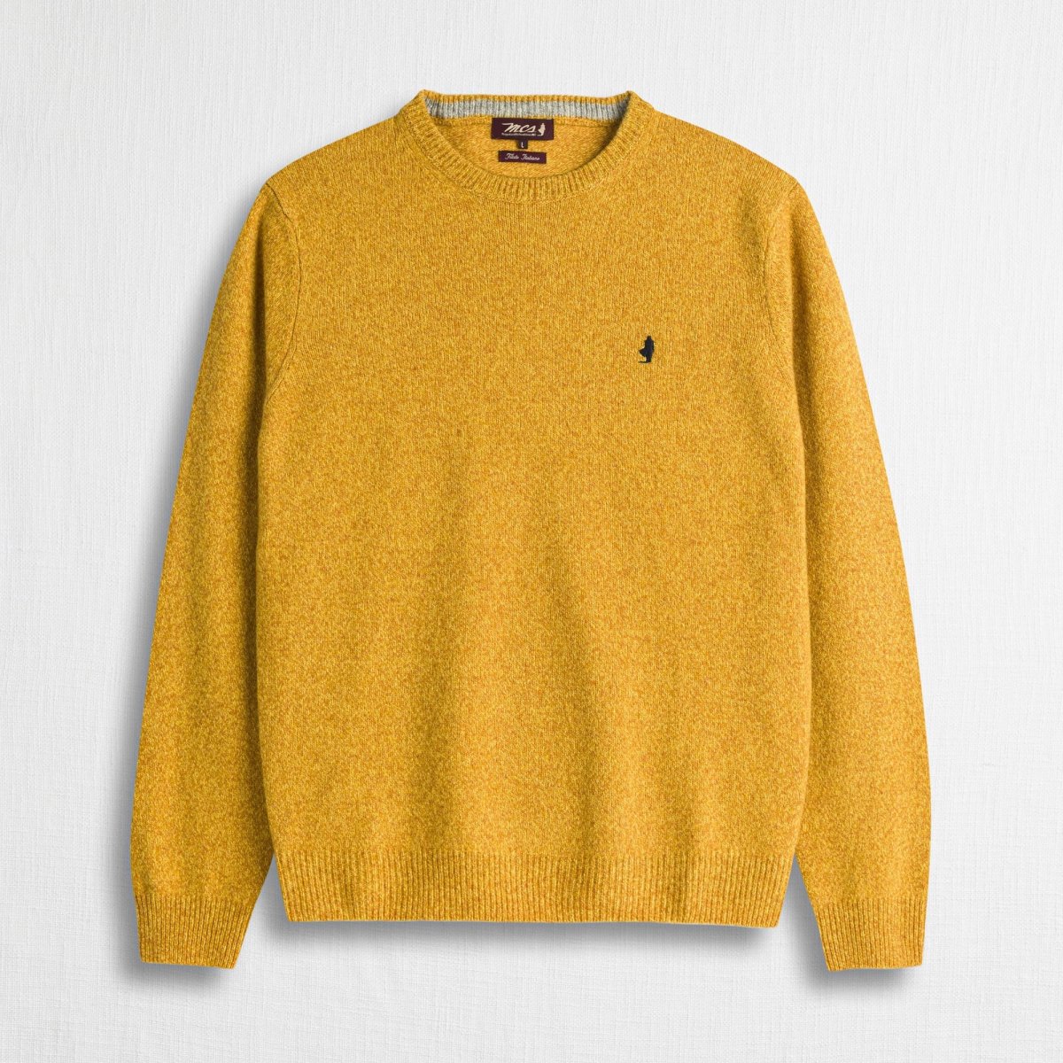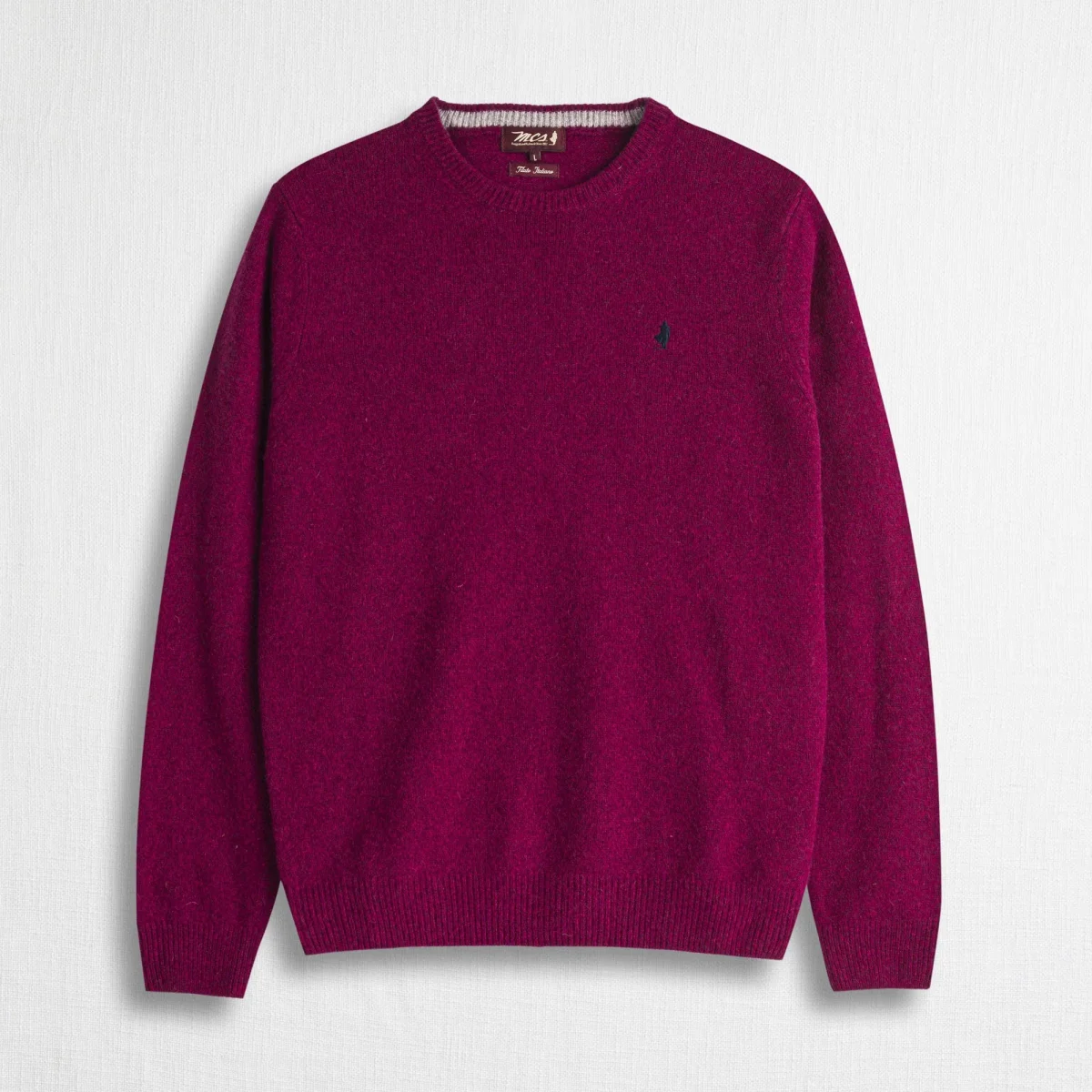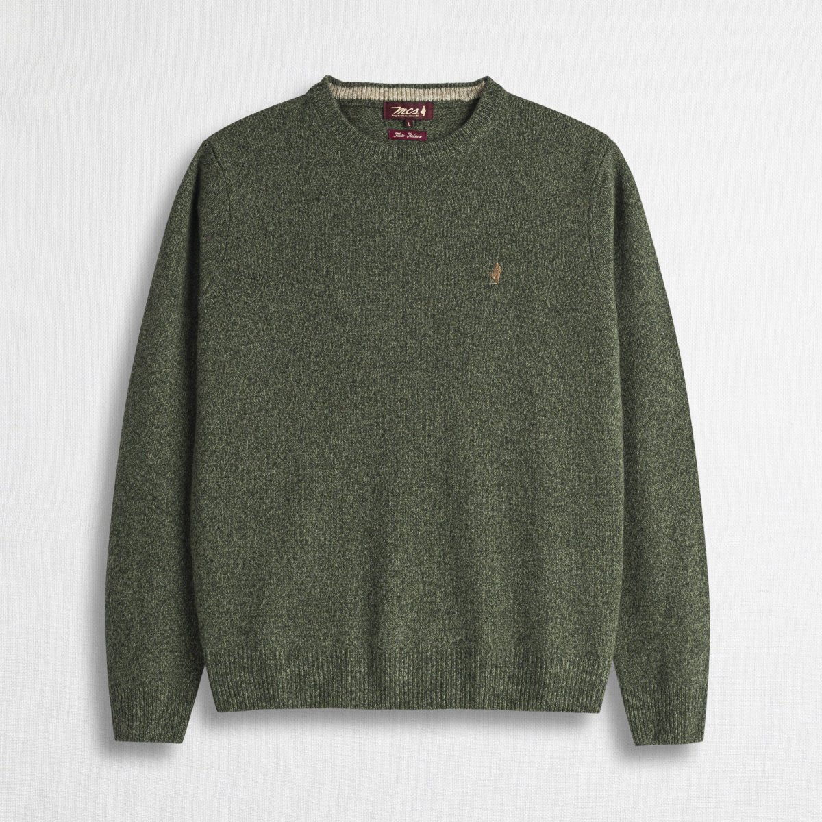 Maglia girocollo uomo in lambswool mouliné finezza 7. La lavorazione intreccia due filati di colore diverso creando sfumature profonde e un effetto visivo ricercato. Morbida e resistente, è rifinita con contrasto interno al collo e ricamo Rider sul punto cuore. Un pullover versatile, caldo e dal carattere autentico, ideale per look casual senza tempo.