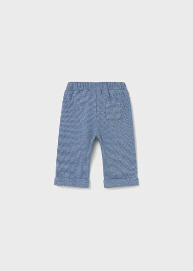 Pantalone per neonato. Chiusura con un unico bottone. Finta patta. Elastico in vita. Dettaglio con orlo con risvolto. Tasche funzionali nella parte anteriore.