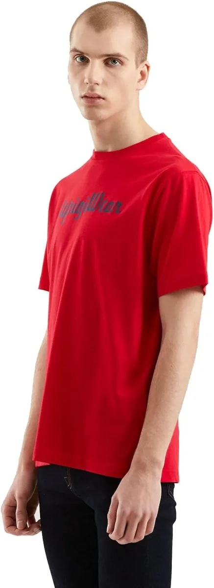 T-shirt basica in 100% cotone traspirante e morbido con stampa logo sul petto, vestibilità lievemente slim ma comoda