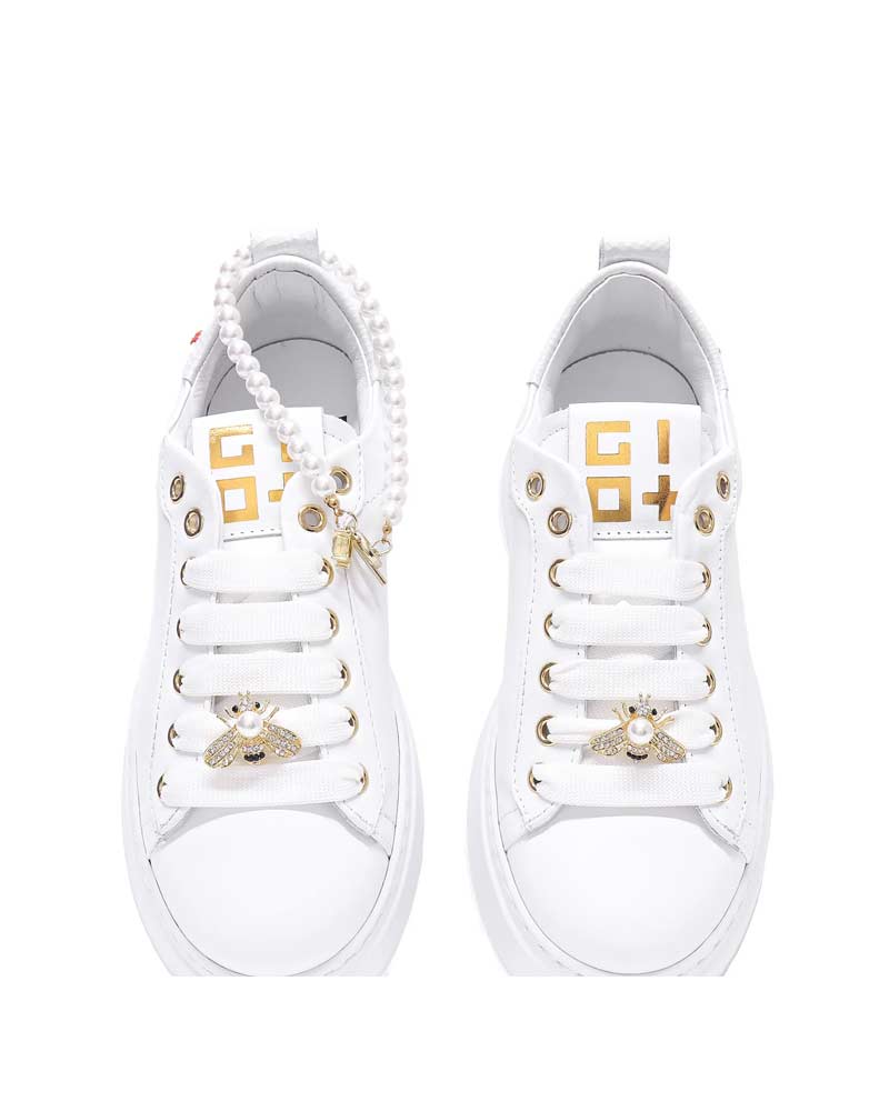 Le sneakers Gio+ PIA340A da donna uniscono stile e funzionalità con un design raffinato. Realizzate in bianco elegante, presentano un dettaglio distintivo: un’ape removibile che aggiunge un tocco unico e personalizzabile.