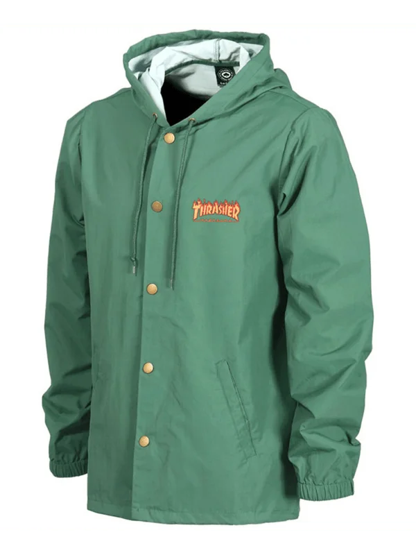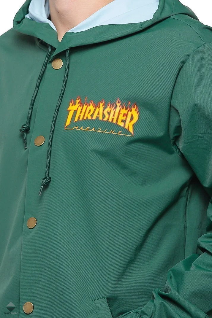THRASHER FLAME LOGO COACH JACKET GREEN FOREST