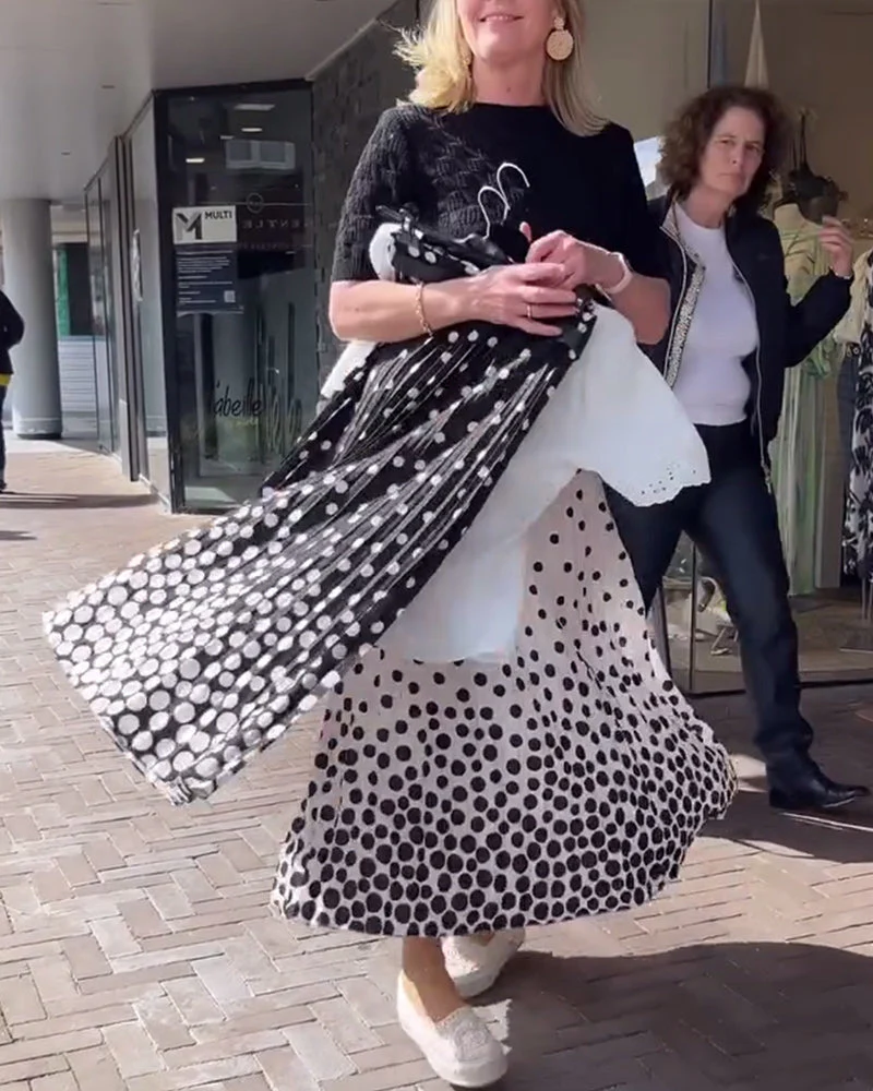 - Design Versatile: Le pieghe classiche e il pattern a pois creano un look chic adatto a ogni evento.