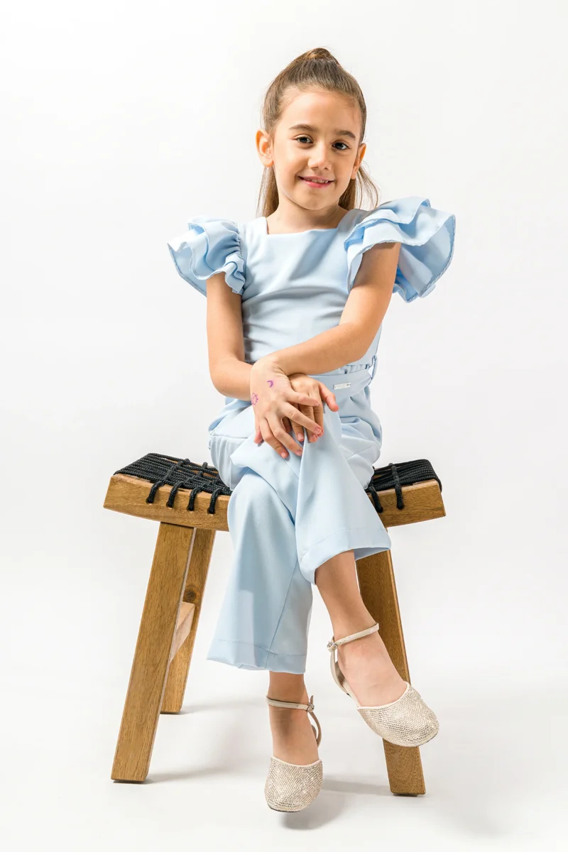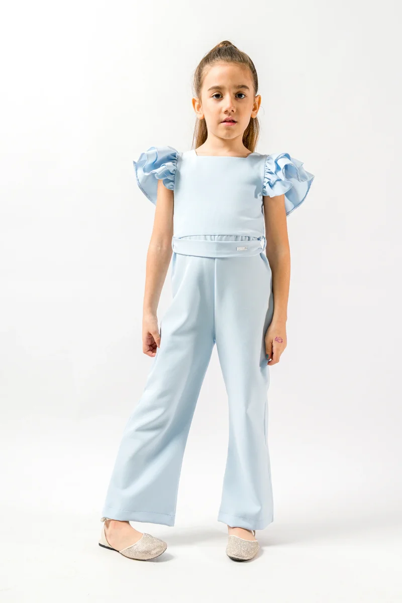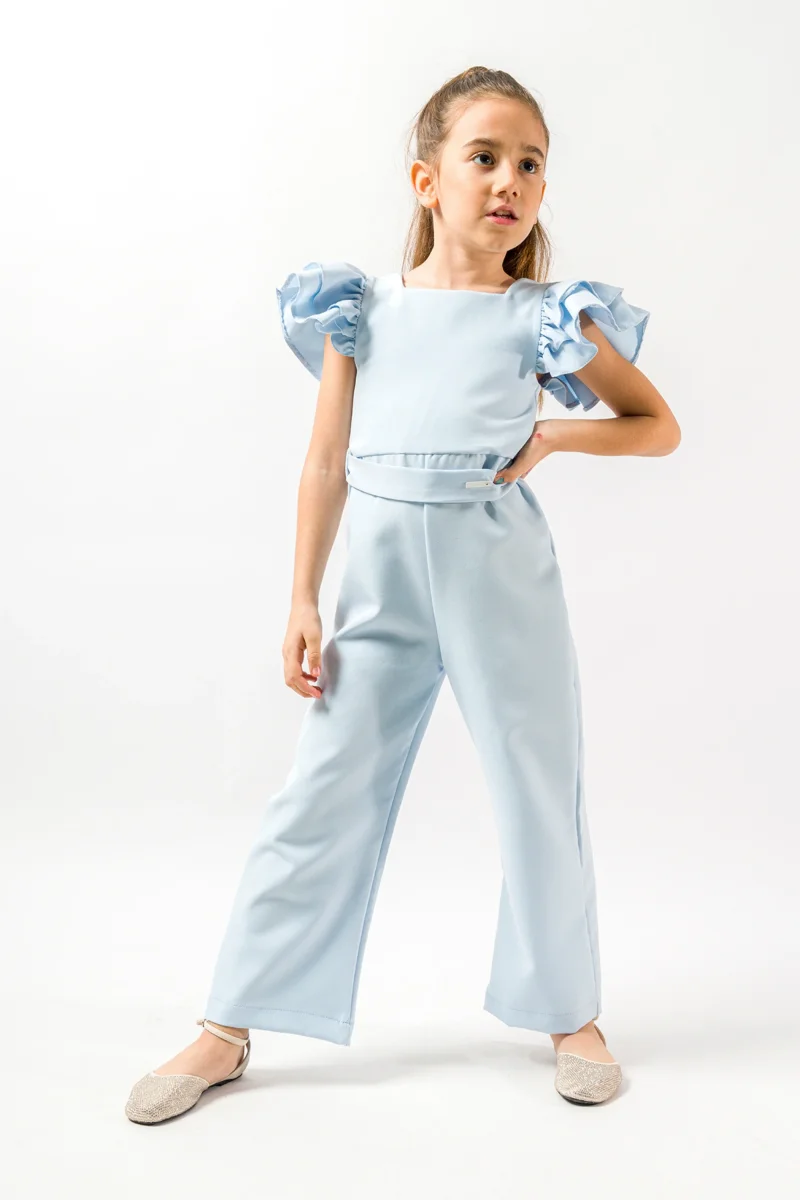 Tuta Intera Azzurro Polvere Bambina Volant